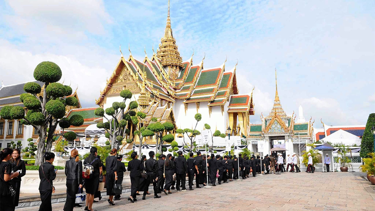 ที่พระบรมมหาราชวัง ตลอดทั้งวันที่ 11 ก.ค.ผู้สื่อข่าวรายงานว่าประชาชนจากทั่วสารทิศ เดินทางมารอเข้าถวายสักการะพระบรมศพพระบาทสมเด็จพระปรมินทรมหาภูมิพลอดุลยเดช ณ พระที่นั่งดุสิตมหาปราสาท อย่างต่อเนื่อง ขณะเดียวกัน นายเจิง เฟยเหยียน อดีตรองนายกรัฐมนตรีสาธารณรัฐ ประชาชนจีน และรองประธานการประชุมเอเชียโป๋อ๋าว และคณะ ได้มาลงนามแสดงความเสียใจในสมุดหลวง ณ ศาลาว่าการพระราชวัง ในพระบรม มหาราชวัง รวมทั้งนายจิน ลี่ฉวิน ประธานบริหารธนาคารเพื่อการลงทุนโครงสร้างพื้นฐานแห่งเอเชีย (เอไอไอบี) และคณะ เดินทางมาวางพวงมาลาถวาย บังคมพระบรมศพพระบาทสมเด็จพระปรมินทรมหาภูมิพลอดุลยเดช ณ พระที่นั่งดุสิตมหาปราสาท และลงนามแสดงความอาลัย ณ ศาลาว่าการพระราชวัง ในพระบรมมหาราชวัง