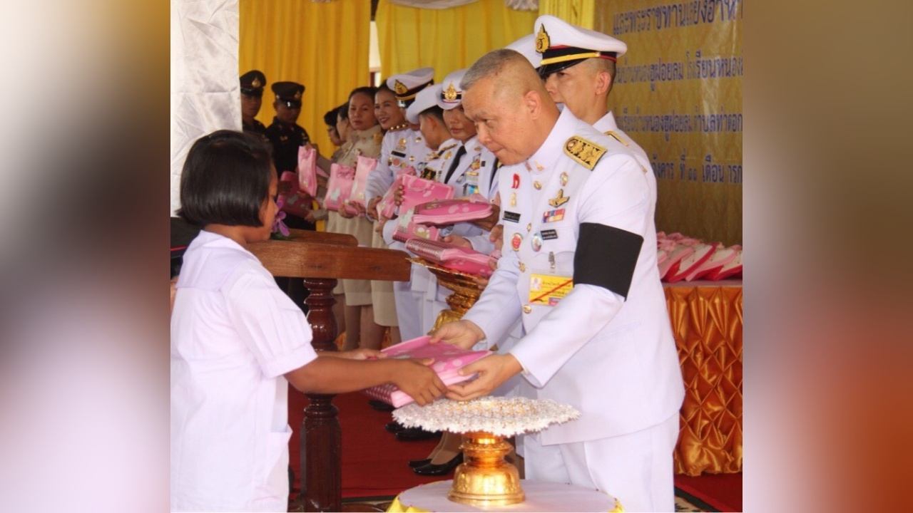 สมเด็จพระเจ้าอยู่หัว ทรงพระกรุณาโปรดเกล้าโปรดกระหม่อมให้เชิญอุปกรณ์การเรียนและเครื่องเขียนพระราชทาน ไปมอบแก่โรงเรียนในจังหวัดบึงกาฬ..