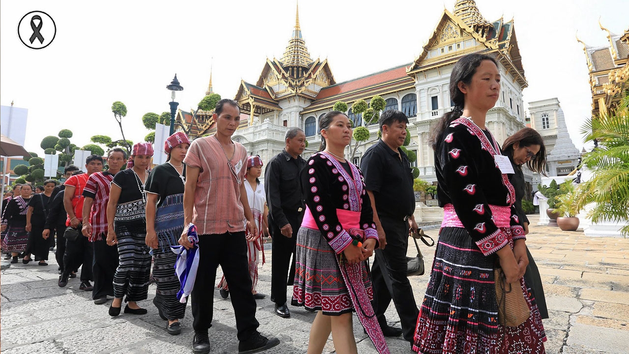 ยิ่งใกล้งานพระราชพิธีถวายพระเพลิงพระ บรมศพ พระบาทสมเด็จพระปรมินทรมหาภูมิพล อดุลยเดช พสกนิกรจากทั่วหล้ายิ่งทยอยเดินทางเข้าถวายสักการะพระบรมศพในหลวงรัชกาลที่ 9 บนพระที่นั่งดุสิตมหาปราสาท ในพระบรมมหาราชวัง อย่างต่อเนื่องและเนืองแน่นขึ้นเรื่อยๆ โดยเมื่อวันที่ 5 ส.ค. นอกจากประชาชนทั่วไปแล้ว ยังมีคณะชาวเขา 5 ชนเผ่า ได้แก่ คะฉิ่น ม้ง กะเหรี่ยง อาข่า และปะหล่อง ที่นำโดยนางพรนันท์ เทพหัสดิน ณ อยุธยา หัวหน้าแผนกประชาสัมพันธ์และการท่องเที่ยว มูลนิธิโครงการหลวง พร้อมเจ้าหน้าที่ และลูกจ้างมูลนิธิโครงการหลวงใน จ.เชียงใหม่ จำนวน 9 แห่ง ประมาณ 800 คน เดินทางเข้ามาถวายสักการะพระบรมศพ ด้วยรู้สึกสำนึกในพระมหากรุณาธิคุณเป็นล้นพ้น