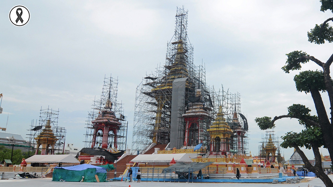 สำหรับความคืบหน้าการก่อสร้างพระเมรุมาศ ในพระราชพิธีถวายพระเพลิงพระบรมศพพระบาทสมเด็จพระปรมินทรมหาภูมิพลอดุลยเดช ผู้สื่อข่าวได้รับการเปิดเผยจากนายก่อเกียรติ ทองผุด นาย ช่างศิลปกรรม สำนักสถาปัตยกรรม กรมศิลปากร ว่าขณะนี้ได้ติดตั้งสะพานเกรินสำหรับใช้ในการอัญเชิญพระบรมโกศจากราชรถปืนใหญ่สู่พระจิตกาธานภายในพระเมรุมาศทางฝั่งทิศเหนือ โดยติดตั้งตัวโครงสร้างของสะพานเกรินที่เป็นไม้เสร็จแล้ว มีความยาวประมาณ 40 เมตร เอียงมุมประมาณ 70 องศา อยู่ระหว่างการผลิตหางสะพานเกริน และงานปั้นบริเวณส่วนเกริน รวมทั้งจัดทำระบบกว้านขึ้นไปสู่พระเมรุมาศ เนื่องจากต้องกำหนดระยะการกว้านที่เป็นสลิงในการอัญเชิญพระบรมโกศเคลื่อนไปบนสะพานเกรินจนสิ้นสุดระยะก่อนที่จะปิดพระวิสูตร หรือผ้าม่าน และพระฉากในการเปลื้องพระโกศทองใหญ่เพื่อถวายการประกอบพระโกศจันทน์เป็นไปด้วยความสง่างามสมพระเกียรติยศ