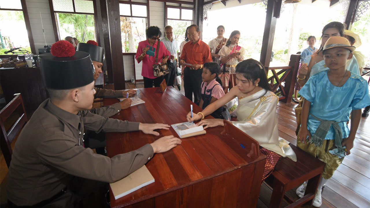 โรงพักย้อนยุค ผู้เข้าชมงานอุ่นไอรัก คลายความหนาว มาลงบันทึกประจำวันแบบยุคเก่า เก็บไว้เป็นที่ระลึกที่โรงพักสามแยก ข้างประตูทางเข้าสนามเสือป่า ซึ่งจำลองโรงพักสมัย ร.5 โดยมี ตร.แต่งเครื่องแบบในยุคนั้นอยู่ประจำการจริง.