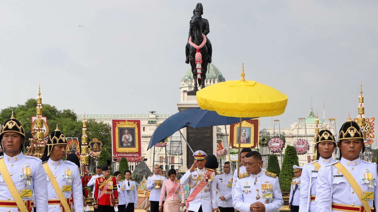 สมเด็จพระเจ้าอยู่หัว เสด็จพระราชดำเนินไปในการพระราชพิธีทรงบำเพ็ญพระราชกุศลวันปิยมหาราช ณ พระบรมราชานุสรณ์พระบาทสมเด็จพระจุลจอมเกล้าเจ้าอยู่หัว พระลานพระราชวังดุสิต...