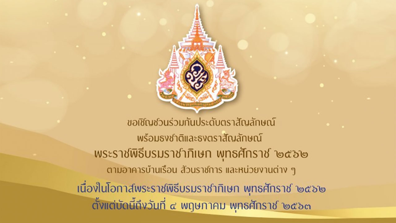 คณะกรรมการฝ่ายประชาสัมพันธ์ งานพระราชพิธีบรมราชาภิเษก เชิญชวน ร่วมประดับตราสัญลักษณ์ พร้อมธงชาติและธงตราสัญลักษณ์พระราชพิธีบรมราชาภิเษก พุทธศักราช ๒๕๖๒