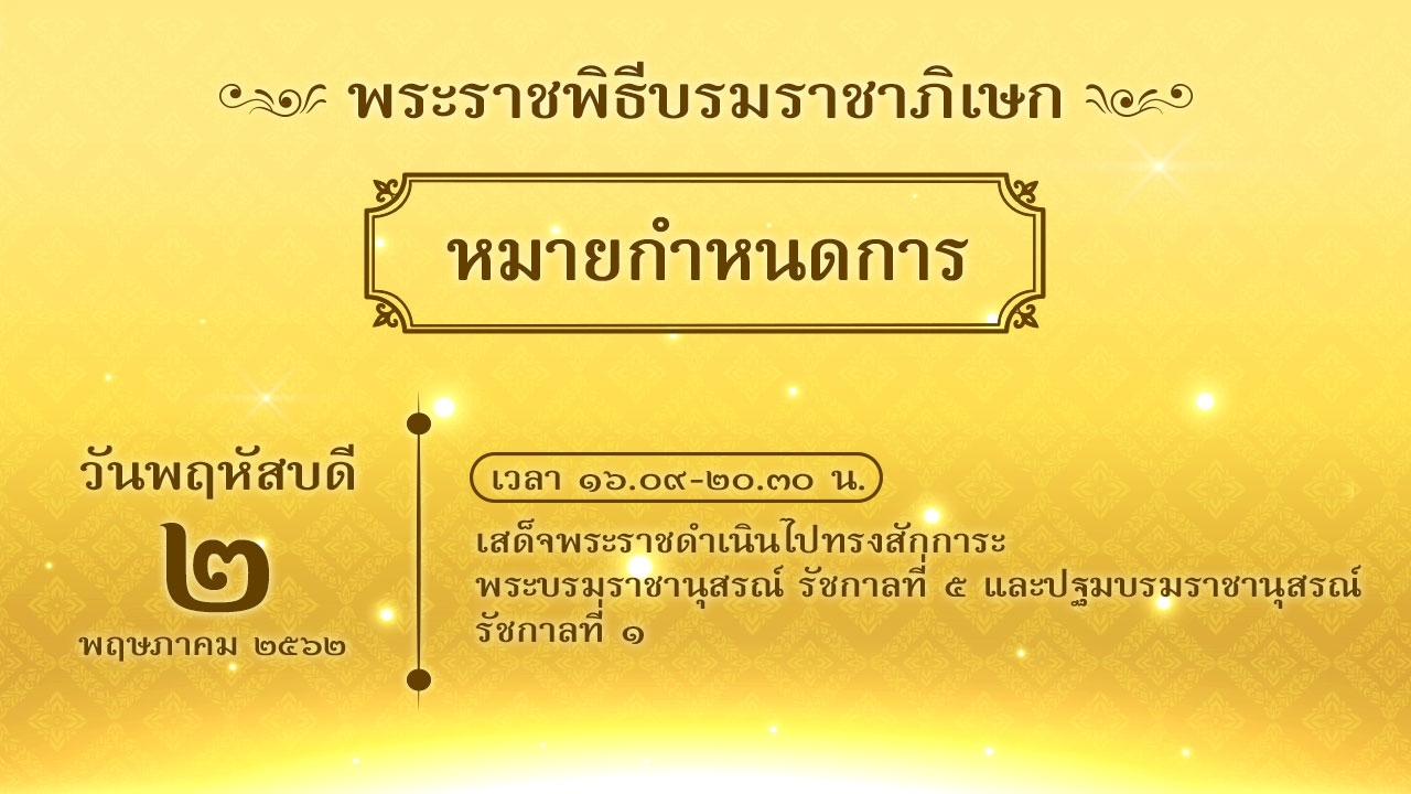 สำหรับพระราชพิธีบรมราชาภิเษก สมเด็จพระเจ้าอยู่หัวมหาวชิราลงกรณ บดินทรเทพยวรางกูร ในวันที่ 4-6 พ.ค.2562 จะเป็นครั้งที่ 12 ซึ่งคนไทยจะได้เห็น และมีส่วนร่วมบันทึกประวัติศาสตร์ไทย ในพระราชพิธีบรมราชาภิเษกครั้งนี้ ที่ห่างหายมา 69 ปี หลังจากพระราชพิธีบรมราชาภิเษก พระบาทสมเด็จพระปรมินทรมหาภูมิพลอดุลยเดช บรมนาถบพิตร เมื่อวันที่ 5 พฤษภาคม 2493