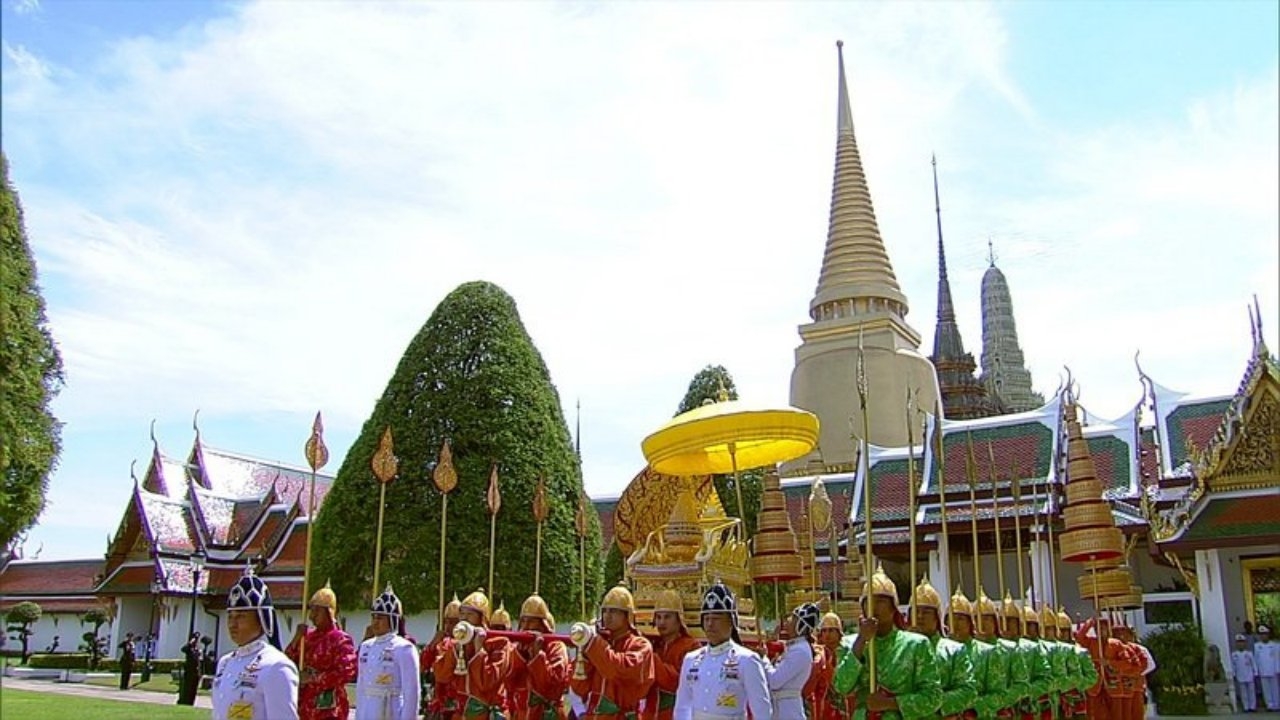 พิธีเชิญพระสุพรรณบัฏ ดวงพระบรมราชสมภพ และพระราชลัญจกรประจำรัชกาล จากพระอุโบสถวัดพระศรีรัตนศาสดาราม ไปประดิษฐานยังพระที่นั่งไพศาลทักษิณ เพื่อทูลเกล้าฯ ถวาย ในพระราชพิธีบรมราชาภิเษก...
