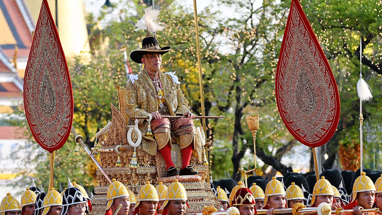 เวลา 16.45 น. พระบาทสมเด็จพระเจ้าอยู่หัว สมเด็จพระนางเจ้าสุทิดาฯ พระบรมราชินี เสด็จโดยรถยนต์พระที่นั่งถึงพระบรมมหาราชวัง การนี้ สมเด็จพระเจ้าลูกเธอ เจ้าฟ้าพัชรกิติยาภา นเรนทิราเทพยวดี โดยเสด็จด้วย พระบาทสมเด็จ พระเจ้าอยู่หัวทรงเครื่องบรมขัตติยราชภูษิตาภรณ์ ทรงพระมาลาเส้าสูงประทับบนพระที่นั่งพุดตานทอง ริ้วขบวนพระบรมราชอิสริยยศเดินเป็นแบบกึ่งสวนสนาม ตามจังหวะดนตรีเพลงพระราชนิพนธ์ 6 เพลง ที่บรรเลงโดยวงดุริยางค์ ประกอบด้วย มาร์ชราชวัลลภ ยามเย็น ใกล้รุ่ง สรรเสริญเสือป่า สรรเสริญพระนารายณ์ และมาร์ชธงชัยเฉลิมพล ทหารบก ทหารเรือ ทหารอากาศ ยิงปืนใหญ่เฉลิมพระเกียรติฝ่ายละ 21 นัด