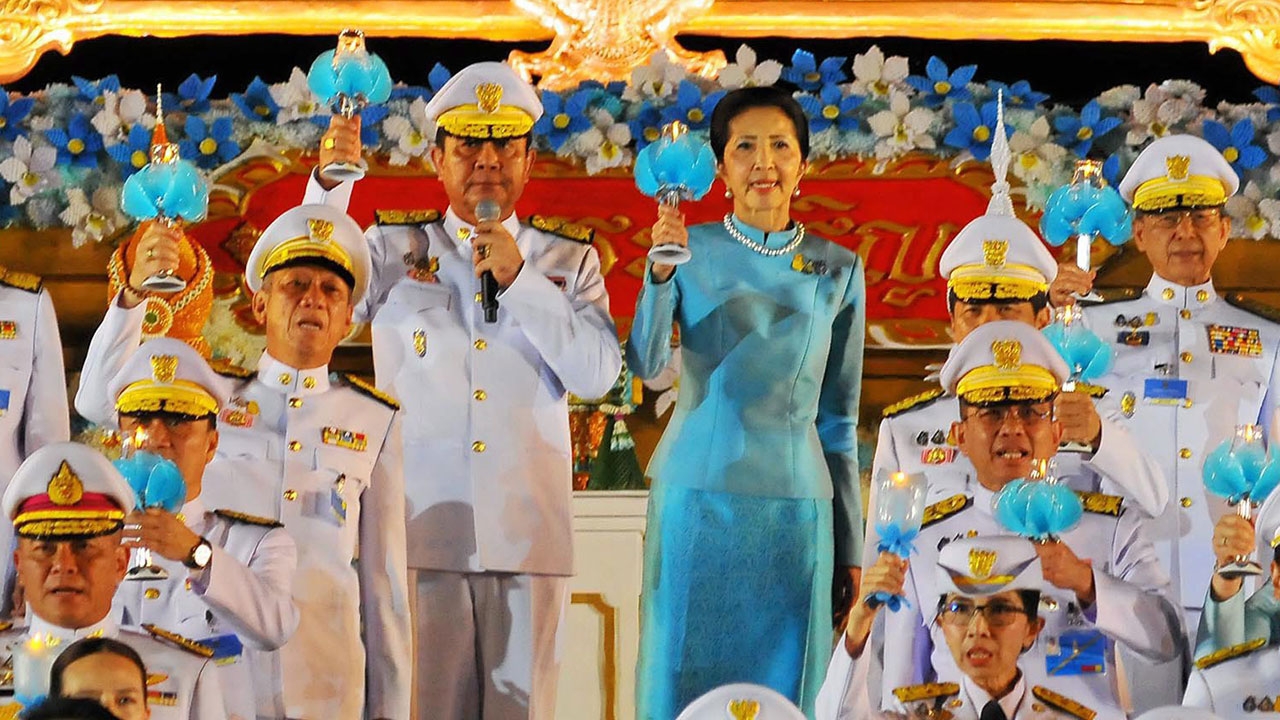 พล.อ.ประยุทธ์ จันทร์โอชา นายกรัฐมนตรี พร้อม นางนราพร จันทร์โอชา ภริยา นำพสกนิกรทุกหมู่เหล่าจุดเทียนชัยถวายพระพรชัยมงคล สมเด็จพระบรมราชชนนีพันปีหลวง เนื่องในวันเฉลิมพระชนมพรรษา ที่ท้องสนามหลวง.