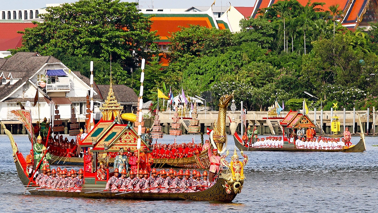 มาถึงครั้งนี้...ในขบวนเรือพระราชพิธีฯก็มีแบบแผนสืบทอดกันมาแต่โบราณราชประเพณี โดยเรือพระราชพิธีฯ ประกอบด้วยเรือพระที่นั่ง และเรือที่ตกแต่งแกะสลักหลากหลายรูปแบบ ต่างประดับประดาปิดทองลงยาอย่างวิจิตรงดงาม แสดงออกถึงความเป็นเอกลักษณ์วัฒนธรรมประเพณีของชาติ และพระมหากษัตริย์ ซึ่งได้ทรงแสดงพระบารมีแผ่ไพศาลเป็นที่พึ่งแก่พสกนิกรชาวไทย