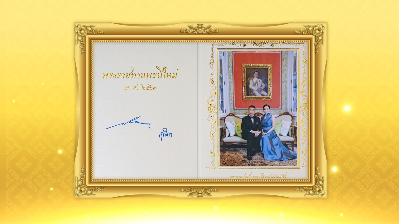 พระบาทสมเด็จพระวชิรเกล้าเจ้าอยู่หัว และ สมเด็จพระนางเจ้าฯ พระบรมราชินี พระราชทานบัตรอวยพรปีใหม่ ประจำปีพุทธศักราช 2563 แก่ปวงชนชาวไทย ด้านขวาเป็นภาพพระบรมฉายาลักษณ์ ที่ทรงฉายกับสมเด็จพระนางเจ้าฯ พระบรมราชินี ด้านซ้ายมีข้อความว่า “พระราชทานพรปีใหม่ พ.ศ.๒๕๖๓” พร้อมทรงลงพระปรมาภิไธยและพระนามาภิไธย.