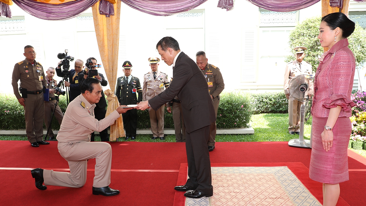 เมื่อเวลา 10.24 น. เมื่อวันที่ 6 เม.ย. 63 พระบาทสมเด็จพระเจ้าอยู่หัว และสมเด็จพระนางเจ้าฯ พระบรมราชินี เสด็จออก ณ พระที่นั่งอัมพรสถาน พระราชวังดุสิต พระราชทานพระบรมราชวโรกาสให้ พลเอก ประยุทธ์ จันทร์โอชา นายกรัฐมนตรี นายอนุทิน ชาญวีรกูล รัฐมนตรีว่าการกระทรวงสาธารณสุข