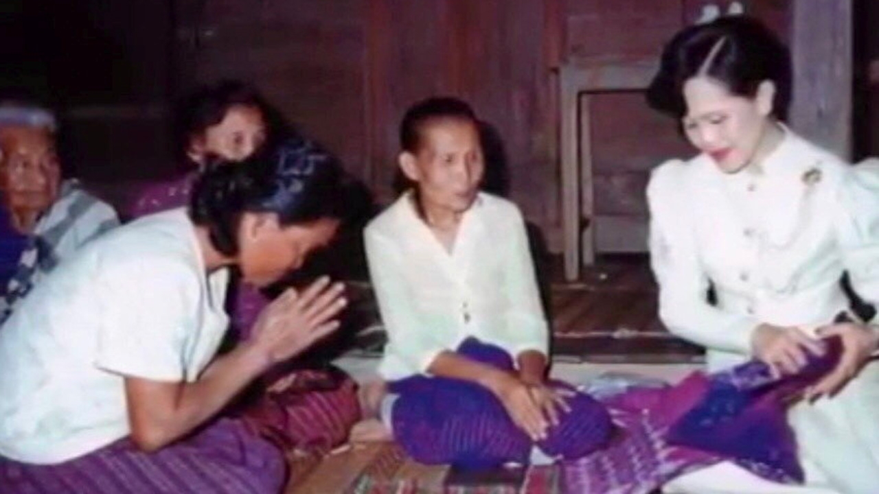 ย้อนไปปี พ.ศ.2518 เมื่อครั้ง สมเด็จพระนางเจ้าสิริกิติ์ พระบรมราชินีนาถ พระบรมราชชนนีพันปีหลวง เสด็จพระราชดำเนินไปที่โรงเรียนร่มเกล้า ต.ตองโขบ อ.โคกศรีสุพรรณ พระองค์ท่านทอดพระเนตรผ้าไหมที่ คุณยายไท้ และ คุณยายทุ้ม สวมใส่รับเสด็จ