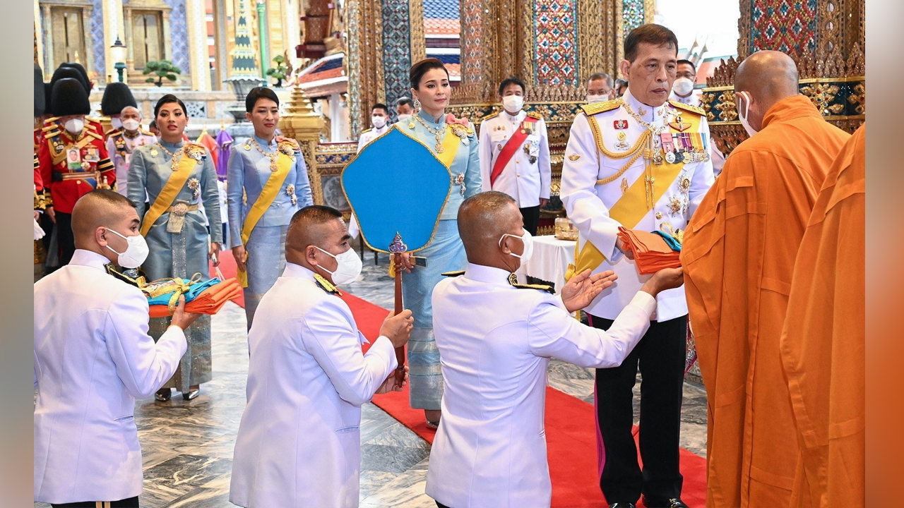 พระบาทสมเด็จพระเจ้าอยู่หัว สมเด็จพระนางเจ้าฯ พระบรมราชินี เสด็จฯพร้อมพระราชธิดาทั้งสองพระองค์ ในการพระราชพิธีมหามงคลเฉลิมพระชนมพรรษา 90 พรรษา สมเด็จพระบรมราชชนนีพันปีหลวง 12 สิงหาคม 2565 โดยทรงประเคนพัดรอง ผ้าไตร และย่ามที่ระลึกฯ แด่ บรรพชิตจีนและญวน ณ วัดพระศรี รัตนศาสดาราม ในพระบรมมหาราชวัง.