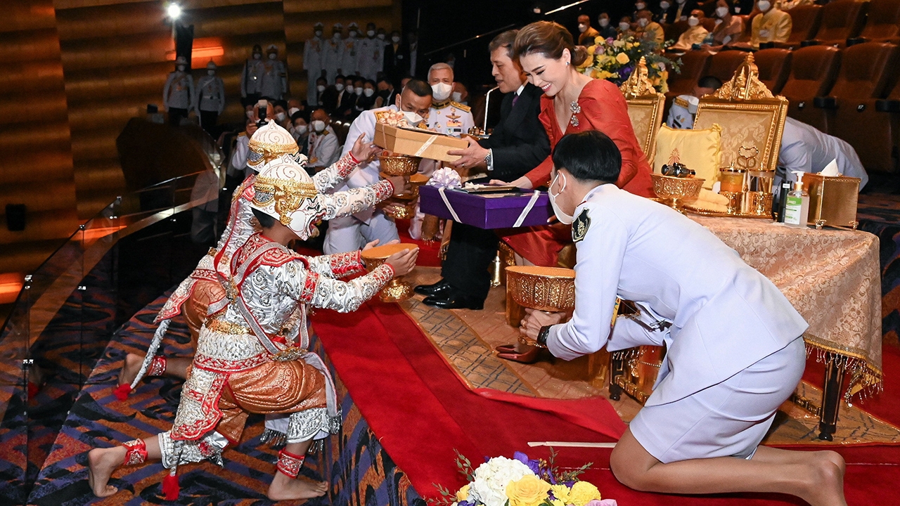 เมื่อจบภาพยนตร์นางนฤมล ล้อมทอง กรรมการ ผู้จัดการ บริษัท สหศีนิมา จำกัด กราบบังคมทูลเบิกผู้ให้การสนับสนุน, ผู้กำกับภาพยนตร์, ผู้กำกับการแสดงโขน เข้าเฝ้าฯรับพระราชทานช่อดอกไม้จำนวน 5 ช่อ แก่ 1.นายธนกร ศรีสุขใส ผู้จัดการกองทุนพัฒนาสื่อปลอดภัยและสร้างสรรค์ กระทรวงวัฒนธรรม 2.นายฐาปน สิริวัฒนภักดี กรรมการผู้อำนวยการใหญ่ บริษัท ไทยเบฟเวอเรจ จำกัด (มหาชน) 3.นางนลินี รัตนาวะดี บริษัท กัลฟ์ เอ็นเนอร์จี ดีเวลลอปเมนท์ จำกัด (มหาชน) 4.นายสาโรจน์ สุวัณณาคาร ผู้กำกับภาพยนตร์ 5.นายศุภชัย จันทร์สุวรรณ์ ผู้กำกับการแสดงโขน จากนั้นเสด็จออกจากที่ประทับภายในโรงภาพยนตร์ฯเสด็จฯไปยังรถยนต์พระที่นั่ง เสด็จฯ กลับพระที่นั่งอัมพรสถาน พระราชวังดุสิต