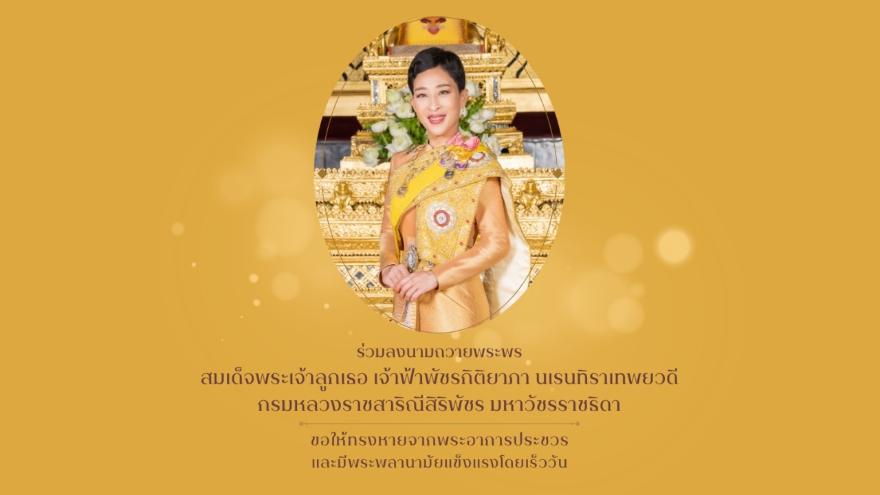 ทั้งนี้ สำนักพระราชวัง ยังได้เปิดให้ประชาชนร่วมลงนามถวายพระพร สมเด็จพระเจ้าลูกเธอ เจ้าฟ้าพัชรกิติยาภา นเรนทิราเทพยวดี กรมหลวงราชสาริณีสิริพัชร มหาวัชรราชธิดา ขอให้ทรงหายจากพระอาการประชวรและมีพระพลานามัยแข็งแรงโดยเร็ววัน ผ่านระบบออนไลน์ ที่เว็บไซต์หน่วยราชการในพระองค์ https://wellwishes.royaloffice.th ตั้งแต่วันนี้เป็นต้นไปด้วย.