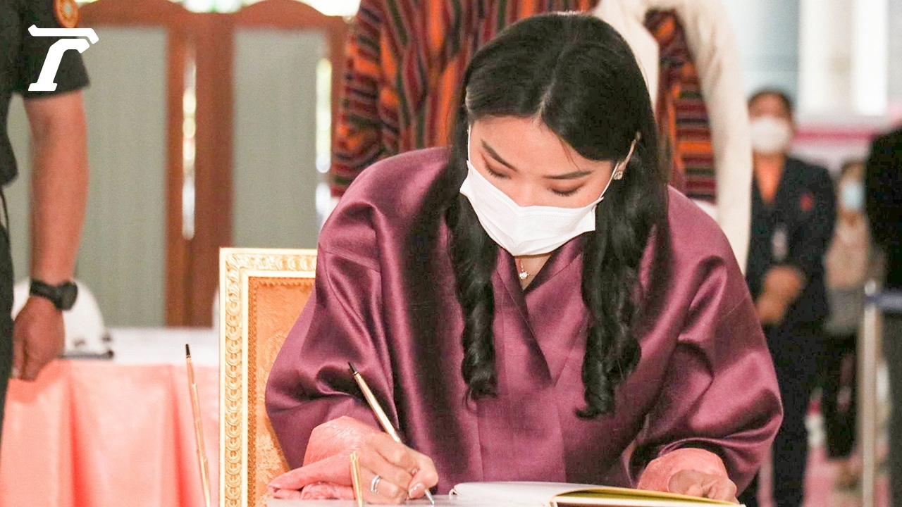 สมเด็จพระราชินีเจตซุน ได้ทรงพระอักษรในสมุดลงพระนามเยี่ยมเป็นภาษาอังกฤษ ความว่า ถึงเจ้าหญิงอันเป็นที่รักและเป็นแรงบันดาลใจให้กับผู้คนมากมาย สมเด็จพระราชาธิบดี จิกมี เคเซอร์ นัมเกล วังชุกและข้าพเจ้า สมเด็จพระราชินีเจตซุน เพมา วังชุก แห่งราชอาณาจักรภูฏาน พร้อมด้วยพสกนิกรชาวภูฏาน ขออวยพรอย่างจริงใจให้ท่านทรงหายจากพระอาการประชวรโดยเร็วและมีพระพลานามัยสมบูรณ์แข็งแรงขึ้นทุกวัน พระนามาภิไธยสมเด็จพระราชินีเจตซุน เพมา วังชุก แห่งราชอาณาจักรภูฏาน