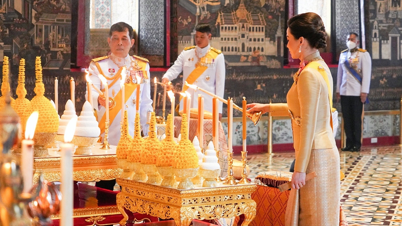 พระบาทสมเด็จพระเจ้าอยู่หัว ทรงจุดธูปเทียนเครื่องราชสักการะทองลงยาราชาวดี แล้วทรงจุดธูปเทียนเครื่องทองน้อย ทรงกราบถวายบังคมพระบรมรูปสมเด็จพระบูรพมหากษัตริยาธิราช สมเด็จพระนางเจ้าฯ พระบรมราชินี ทรงจุดธูปเทียนเครื่องราชสักการะทองลงยารอง แล้วทรงจุดธูปเทียนเครื่องทองน้อย ทรงกราบถวายบังคมพระบรมรูปสมเด็จพระบูรพมหากษัตริยาธิราช สมเด็จ พระเจ้าลูกยาเธอ เจ้าฟ้าทีปังกรรัศมีโชติ มหา วชิโรตตมางกูร สิริวิบูลยราชกุมาร ทรงจุดธูปเทียนเครื่องทองน้อย ทรงกราบถวายบังคมพระบรมรูปสมเด็จพระบูรพมหากษัตริยาธิราช จากนั้นทุกพระองค์เสด็จออกจากปราสาทพระเทพบิดร ไปประทับ รถยนต์พระที่นั่ง ออกจากพระบรมมหาราชวัง เสด็จฯกลับพระที่นั่งอัมพรสถาน พระราชวังดุสิต