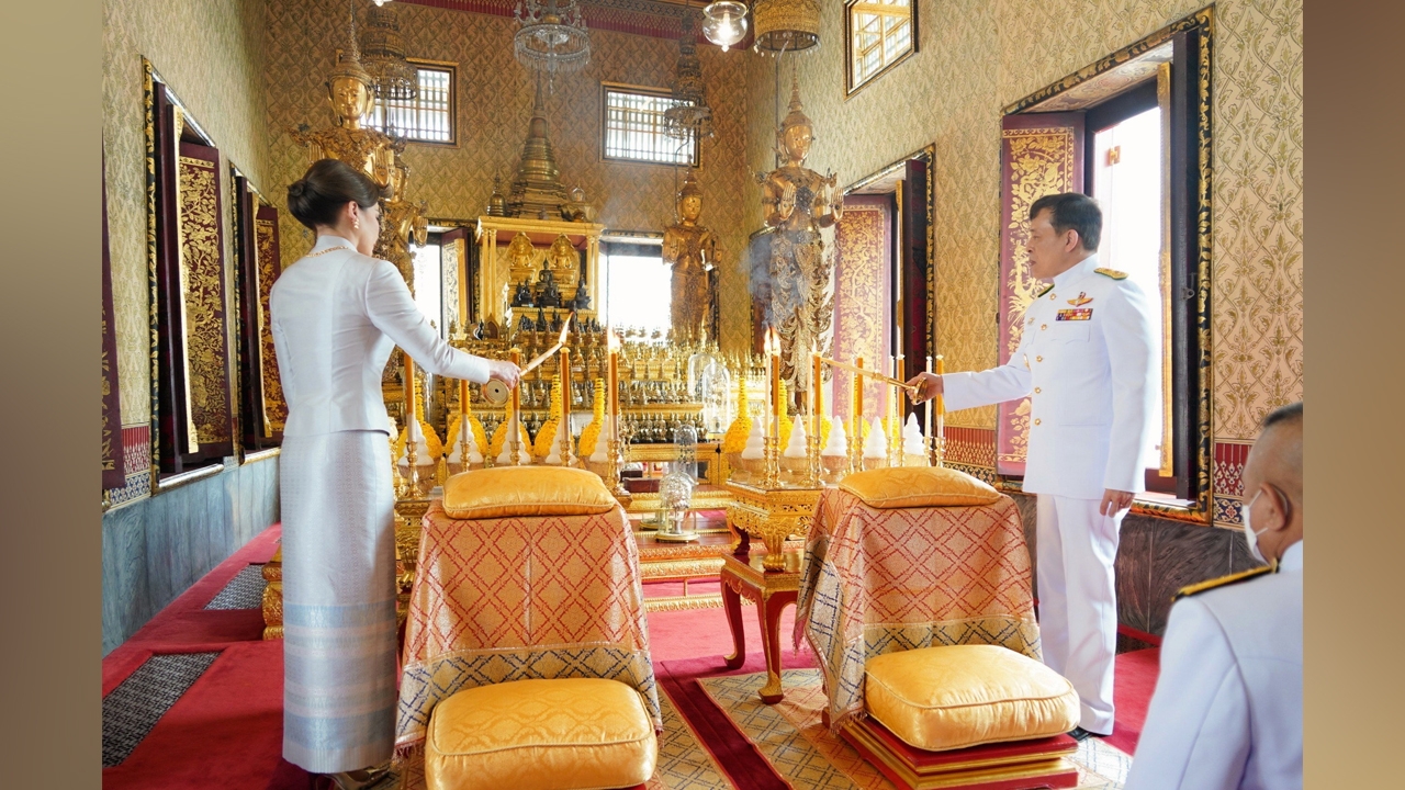 พระบาทสมเด็จพระเจ้าอยู่หัว และ สมเด็จ พระนางเจ้าฯ พระบรมราชินี ทรงจุดธูปเทียนเครื่องนมัสการ และทรงบำเพ็ญพระราชกุศล ในการพระราชพิธีสงกรานต์ ประจำปี 2566 เมื่อวันที่ 15 เม.ย. ที่ถือเป็นวันเถลิงศก ณ หอพระสุราลัยพิมาน พระที่นั่งไพศาลทักษิณ หอพระธาตุมณเฑียร และพระที่นั่งอมรินทรวินิจฉัย ในพระบรมมหาราชวัง.