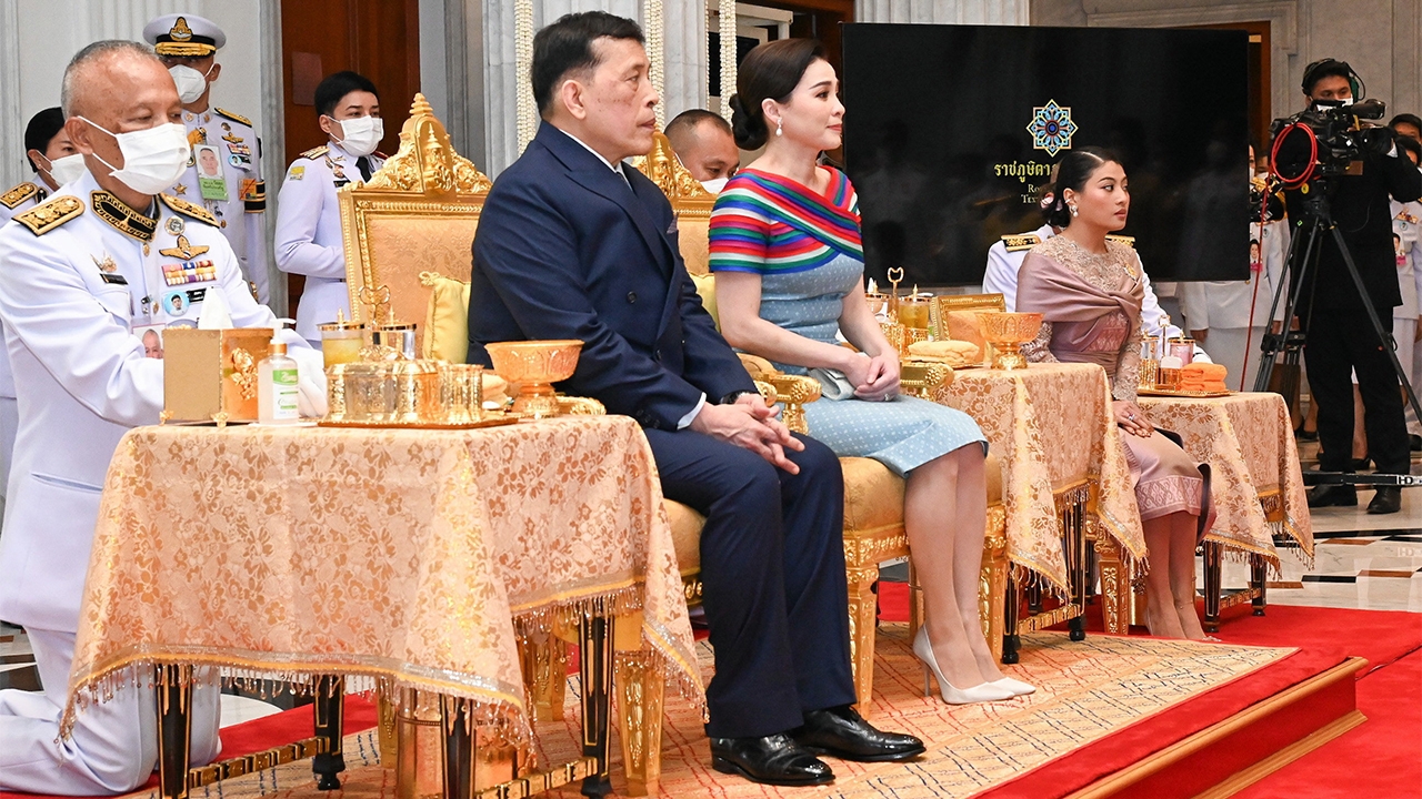 สมเด็จพระกนิษฐาธิราชเจ้า กรมสมเด็จพระเทพรัตนราชสุดาฯ สยามบรมราชกุมารี ถวายดอกไม้ธูปเทียนแพ แล้วกราบบังคมทูลพระกรุณาถวาย พระพรชัยมงคลแทนพระบรมวงศานุวงศ์ จากนั้นนายกรัฐมนตรีถวายดอกไม้ธูปเทียนแพ แล้วกราบ บังคมทูลพระกรุณาถวายพระพรชัยมงคลแทนคณะรัฐมนตรี ข้าราชการทหาร ตำรวจ พลเรือนและราษฎรทุกหมู่เหล่า ประธานรัฐสภาถวายดอกไม้ธูปเทียนแพ แล้วกราบบังคมทูลพระกรุณาถวายพระพรชัยมงคลแทนสมาชิกรัฐสภา ประธานศาลฎีกาถวายดอกไม้ธูปเทียนแพ แล้วกราบบังคมทูลพระกรุณาถวาย พระพรชัยมงคลแทนข้าราชการตุลาการ พระบาท สมเด็จพระเจ้าอยู่หัวมีพระราชดำรัสตอบ จบแล้วเจ้าพนักงานรัวกรับปิดพระวิสูตร เจ้าพนักงานประโคมกระทั่งแตรมโหระทึก กองทหารเกียรติยศถวายความเคารพ พระบาทสมเด็จพระเจ้าอยู่หัวและสม เด็จพระนางเจ้าฯ พระบรมราชินีเสด็จขึ้นพระที่นั่งไพศาลทักษิณไปประทับรถยนต์พระที่นั่ง เสด็จฯกลับ