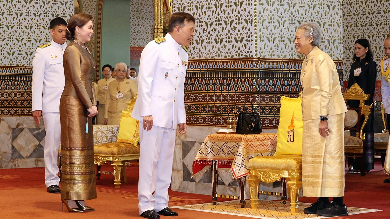 พระบาทสมเด็จพระเจ้าอยู่หัว สมเด็จพระนางเจ้าฯ พระบรมราชินี และ สมเด็จพระเจ้าลูกยาเธอ เจ้าฟ้าทีปังกรรัศมีโชติ มหาวชิโรตตมางกูร สิริวิบูลยราชกุมาร เสด็จฯไปทรงประกอบพระราชพิธีสงกรานต์ 2568 โอกาสนี้ สมเด็จพระกนิษฐาธิราชเจ้า กรมสมเด็จพระเทพรัตนราชสุดาฯ สยามบรมราชกุมารี เฝ้าฯรับเสด็จ ณ พระที่นั่งอมรินทรวินิจฉัย.