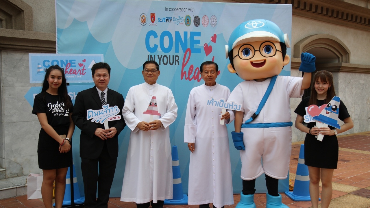 ผู้สื่อข่าวรายงานต่อว่า ความร่วมมือครั้งนี้ บริษัท โตโยต้าฯ สนับสนุนเงิน 100,000 บาท แก่มหาวิทยาลัยอัสสัมชัญดำเนินกิจกรรมรณรงค์ Save Cone Save คน อย่างต่อเนื่องช่วงเดือน ส.ค. ถึง ต.ค. 2560 ผ่านการจัดกิจกรรมให้ความรู้ในเรื่องการขับรถ รวมถึงการประชาสัมพันธ์ต่างๆ เพื่อส่งเสริมให้ผู้ขับขี่คำนึงถึงความปลอดภัยในการใช้รถใช้ถนน ทั้งทางสื่อออนไลน์ และทางสื่อกลางแจ้งโดยรอบบริเวณมหาวิทยาลัย ซึ่งได้รับการสนับสนุนเป็นอย่างดีจาก อบต.บางบ่อ อบต.บางเสาธง และกรมทางหลวงชนบท