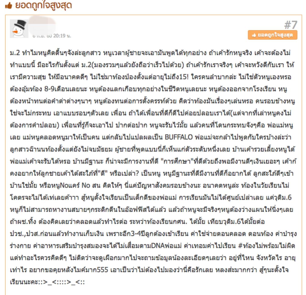 จากกรณี วัยรุ่นคนหนึ่ง ได้เข้าไปโพสต์ขอคำปรึกษาในเว็บไซต์ เด็กดีดอทคอม โดยมีข้อความระบุไว้ดังนี้ "แฟนอยากให้เราท้องเพราะรักเรามาก แต่เราเพิ่ง ม.2 สวัสดีค่ะ เราอยากปรึกษาเพื่อนๆ คือเรามีแฟนคนนึงอายุมากปีนึง คบได้ 8 เดือนแล้ว มีอะไรกันแล้วบ้างค่ะ จนมาวันก่อนเขาบอกไม่ต้องป้องกัน เขาอยากมีลูกเพราะเค้ารักเราจริงอยากให้เราเป็นของเค้าคนเดียว พร้อมจะรับผิดชอบทุกอย่าง อยากถามทุกคนว่าเราควรยอมมั้ยคะ เพราะเรารักเค้ามากเหมือนกัน แต่ยังเรียนกันอยู่นะ อ่อลืมบอกบ้านแฟนมีตังค์มีเงินใช้ก็น่าจะดูแลเราได้เน๊อะ ยังไงดีคิดไม่ตกค่ะ"