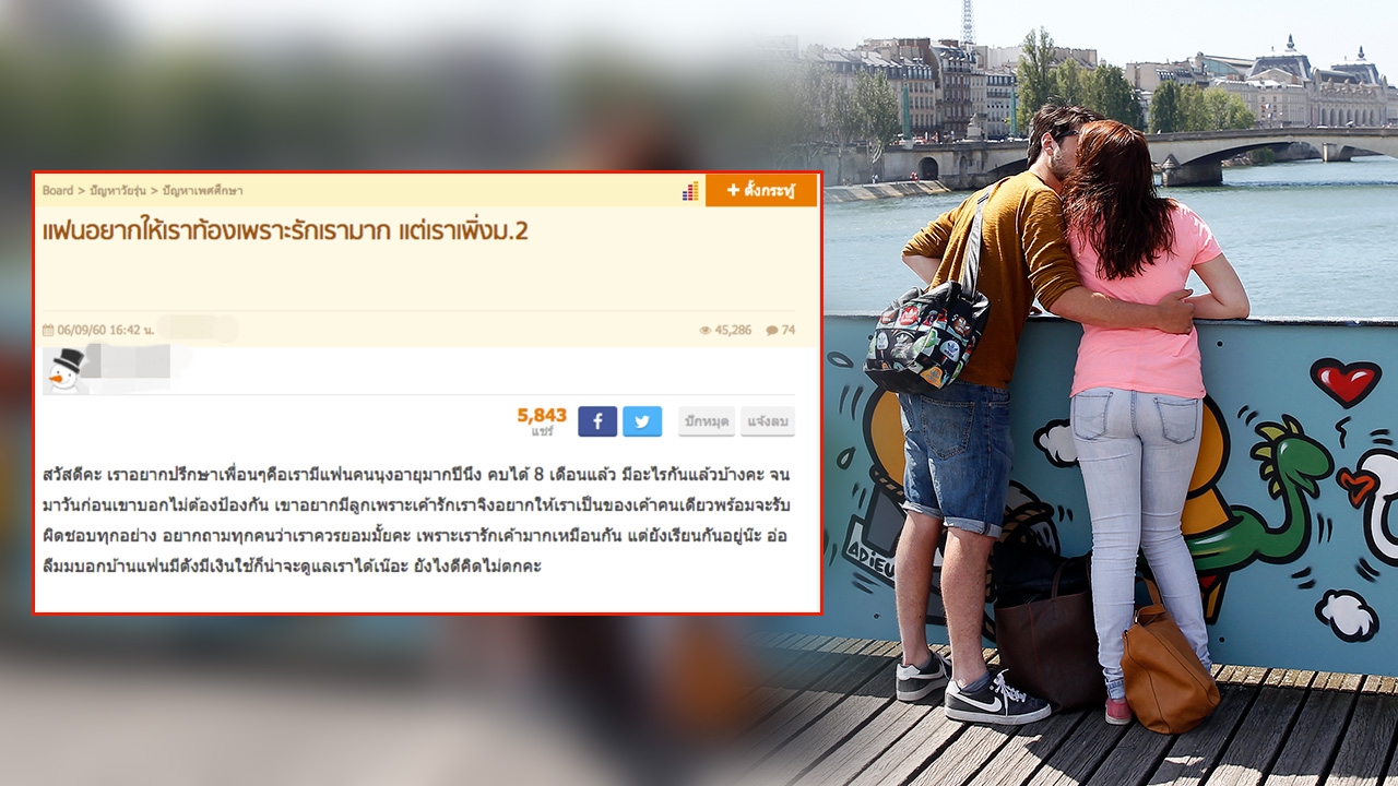 เด็ก ม. 2 โพสต์ข้อความในเว็บบอร์ดถามควรทำอย่างไร แฟนหนุ่มรุ่นพี่ รักมากคบกันได้ 8 เดือน บอกให้ท้องเพราะอยากมีลูก ขณะที่ชาวโซเชียลกระหน่ำแสดงความคิดเห็น