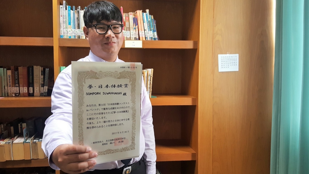 พอลล่า สมพร นศ.ม.อุบลฯ เด็กหนุ่มจาก จ.สกลนคร คว้ารางวัลชนะเลิศ ระดับประเทศ การประกวดความสามารถทางด้านภาษาญี่ปุ่น ครั้งที่ 5 ได้รางวัลทัศนศึกษา 8 คืน 9 วัน ที่ญี่ปุ่น เผย จะมุ่งเรียนภาษาญี่ปุ่นเพื่อสร้างอาชีพเลี้ยงครอบครัว...