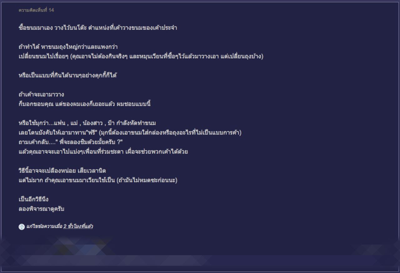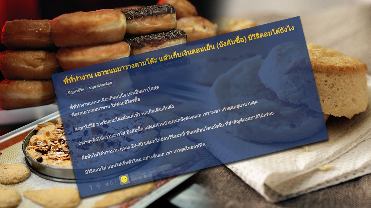 หนุ่มพนักงานออฟฟิศตั้งกระทู้ขอวิธีรับมือตอบโต้ หลังเจอเพื่อนร่วมงานอาวุโสวางขนมบนโต๊ะแล้วเก็บเงิน ทั้งที่ไม่ได้สั่งซื้อ เพื่อนสมาชิกแนะวิธีแก้เผ็ด