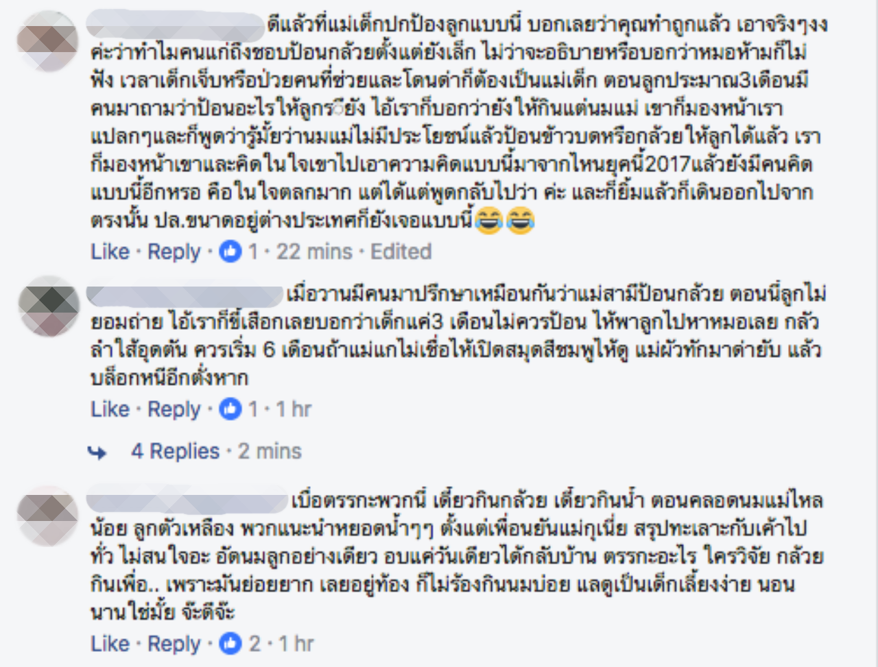 ขณะที่ชาวเน็ตเข้ามาคอมเมนต์กันจำนวนมาก ในทำนองเดียวกันที่เห็นด้วยกับคุณแม่ว่า ไม่ควรป้อนกล้วยบดลูกหากยังไม่ถึง 6 เดือน อยากให้คนรุ่นเก่าเข้าใจเรื่องราวเหล่านี้ด้วย ถ้าไม่อยากให้เกิดเหตุน่าเศร้าขึ้น...