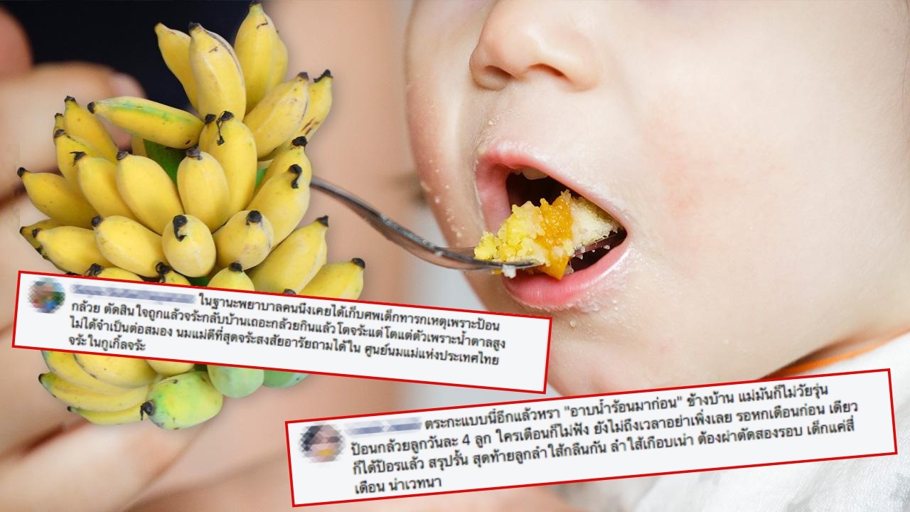 (อ่านเรื่องอันตรายจากการป้อนกล้วยบดเด็กเล็กเพิ่มเติมที่นี่)