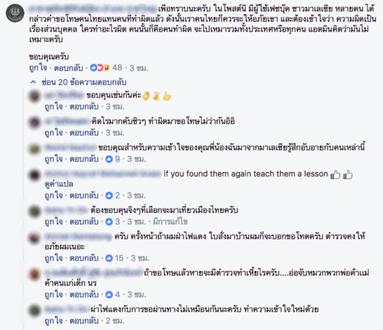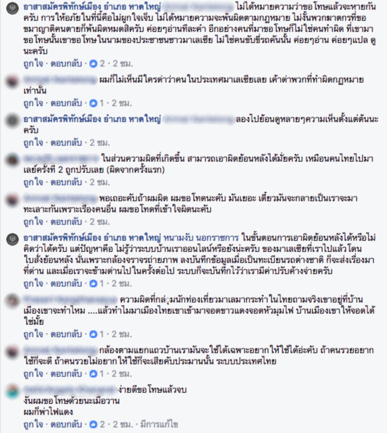 อย่างไรก็ตาม ทางเพจอาสาสมัครพิทักษ์เมือง อำเภอหาดใหญ่ ระบุอีกว่า มีคนมาเลเซียได้เข้ามาขอโทษแทนนักบิดที่ปรากฏภายในคลิป ซึ่งคนไทยบางส่วนก็ได้แสดงน้ำใจโดยบอกว่าไม่เป็นอะไร และบางส่วนร้องเรียนให้ประสานชายแดนเอาผิดทางกฎหมายต่อไป