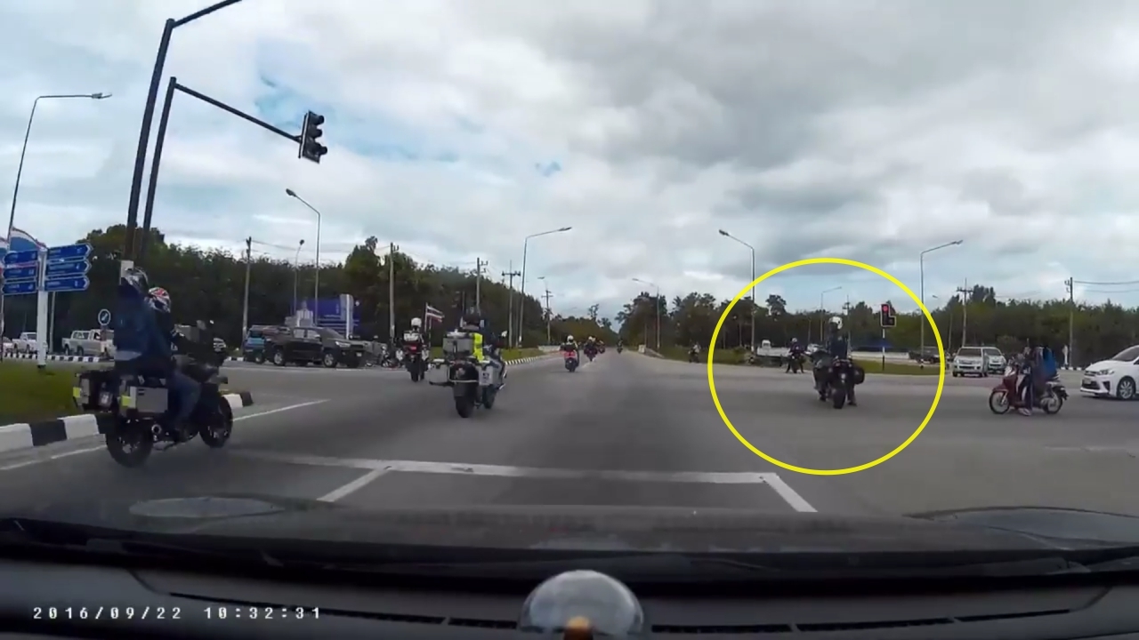 วันที่ 28 ก.ย.60 โลกออนไลน์ได้แชร์คลิปจากเพจเฟซบุ๊ก อาสาสมัครพิทักษ์เมือง อำเภอหาดใหญ่ โดยเป็นภาพจากกล้องหน้ารถเผยให้เห็นรถจักรยานยนต์คันหนึ่งจอดอยู่กลางสี่แยกไฟแดง บริเวณแยกลำภู พื้นที่ อ.เมือง จ.นราธิวาส เพื่อปิดถนนให้กลุ่มเพื่อนนักบิดชาวมาเลเซียจำนวนหลายคันได้ขี่รถฝ่าไฟแดง เมื่อเวลา 10.32 น. ของวันที่ 22 ก.ย.ที่ผ่านมา