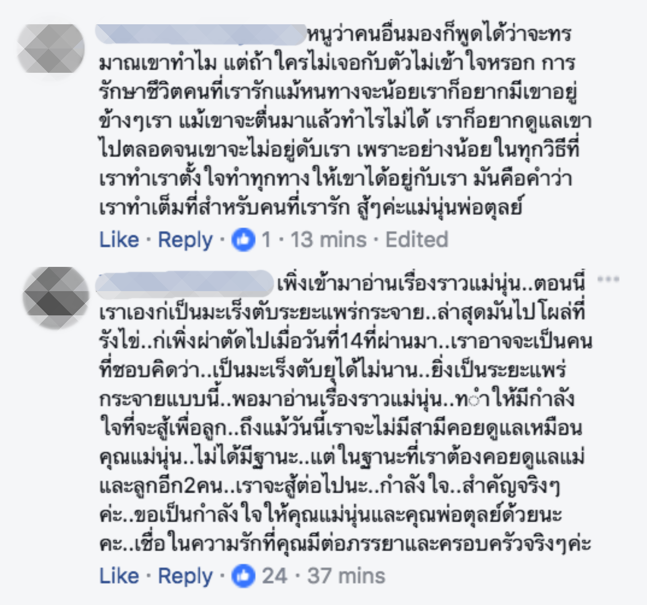 อย่างไรก็ตาม ชาวโซเชียลได้เข้ามาส่งข้อความให้กำลังใจครอบครัวนี้อย่างต่อเนื่องอย่างไม่ขาดสาย...