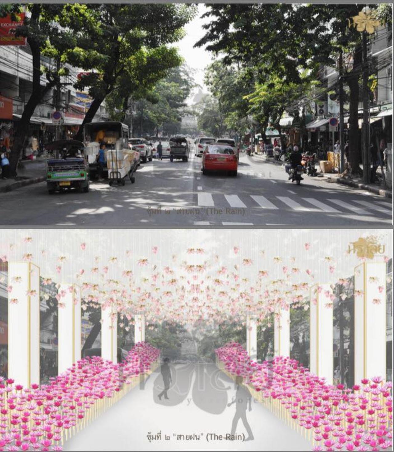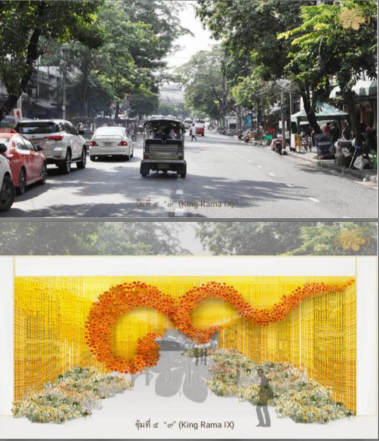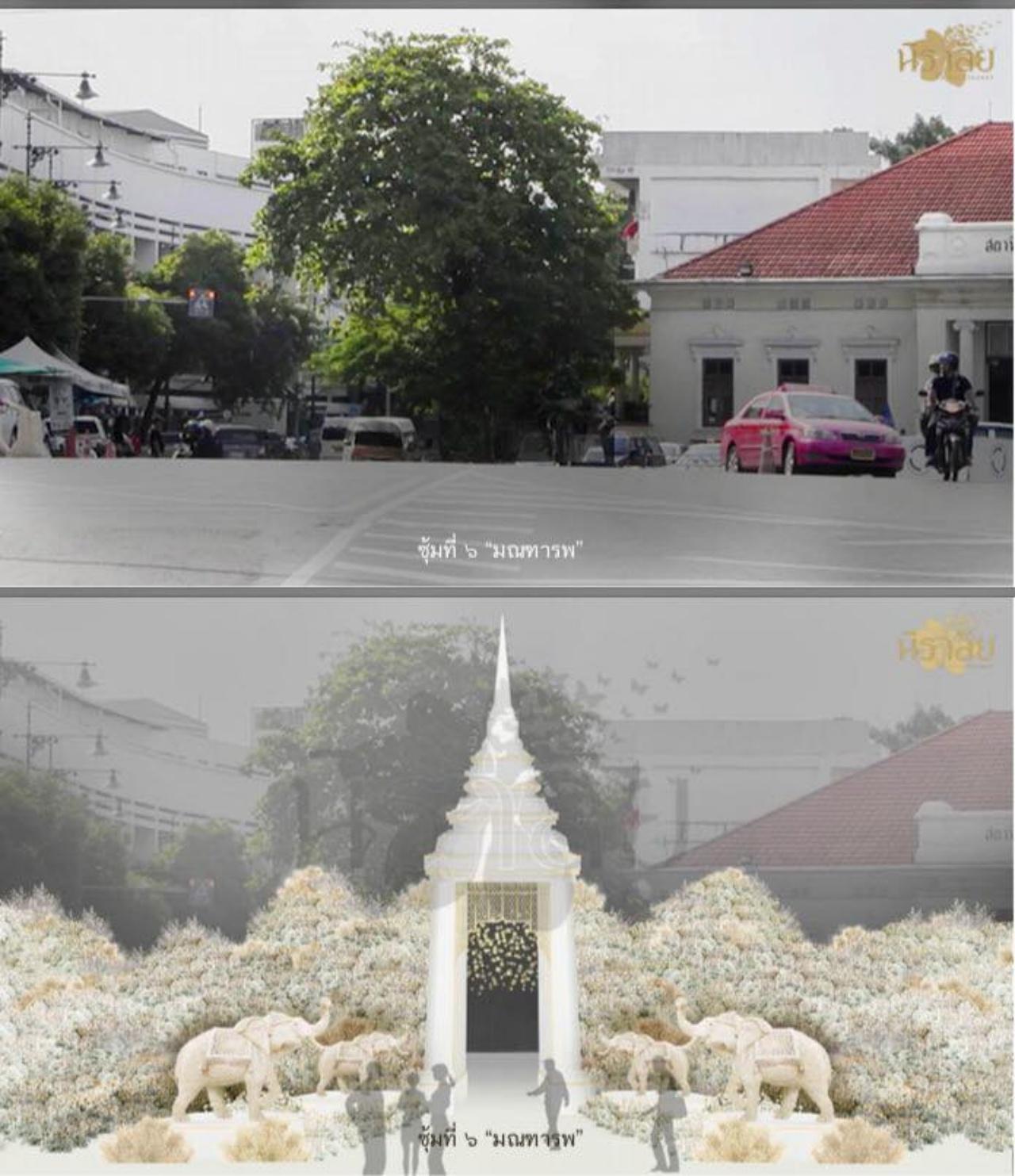 อาทิ ซุ้มที่ 1 คนไทย (Thai) ซุ้มที่ 2 สายฝน (The Rain) ซุ้มที่ 3 รอยเท้าพ่อ ซุ้มที่ 4 บ้าน (Home) ซุ้มที่ 5 ๙ (King Rama IX) ซุ้มที่ 6 มณฑารพ โดยจะเปิดโอกาสให้ประชาชนทั่วไปเข้าชมตั้งแต่วันที่ 22-27 ต.ค.60
