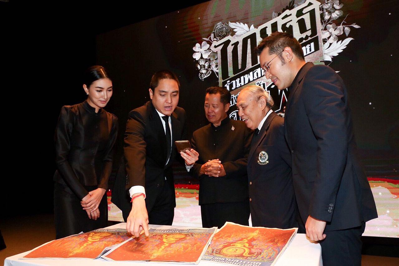 ขณะที่ อาจารย์เฉลิมชัย โฆษิตพิพัฒน์ ศิลปินแห่งชาติ สาขาทัศนศิลป์ (จิตรกรรม) ประจำปี 2554 ซึ่งนำผลงานพระบรมฉายาสาทิสลักษณ์ชิ้นประวัติศาสตร์ “พระผู้เสด็จสู่สวรรคาลัย” เป็นภาพสีอะคริลิกบนผ้าใบ ซึ่งจะถูกนำมาจัดพิมพ์เป็นปกฉบับแรกของโครงการ ในวันศุกร์ที่ 13 ตุลาคม 2560 มาให้ชื่นชม พร้อมกล่าวถึงความรู้สึก และแรงบันดาลใจในการวาดภาพ “พระผู้เสด็จสู่สวรรคาลัย” ว่า ตนตั้งใจวาดภาพกายทิพย์ของในหลวง รัชกาลที่ 9 และใช้ครุฑสี่องค์แทนพรหมวิหารสี่ของพระองค์ท่าน วิมานสิบหลังด้านบน และดอกบัวทิพย์สิบดอกด้านล่างแทนทศพิธราชธรรม ลวดลายทองแทนสัญลักษณ์เลขเก้าไทยที่มีภาพของพระองค์ท่านอยู่ในวงกลม หมายถึง ดวงจิตของพระองค์ท่านที่กำลังขยับลอยขึ้นสู่สวรรคาลัย ซึ่งที่ใช้เวลาในการวาดนานถึง 9 เดือน นับตั้งแต่วันที่ในหลวง รัชกาลที่ 9 เสด็จสวรรคต โดยจะค่อยๆ วาดช่วงเช้ามืดหลังทำสมาธิ และทุกช่วงเวลาที่รู้สึกระลึกถึงพระองค์ท่าน