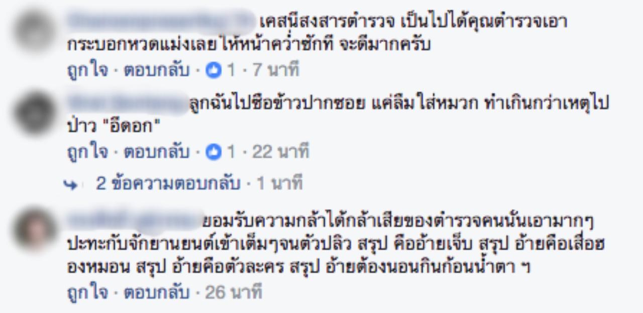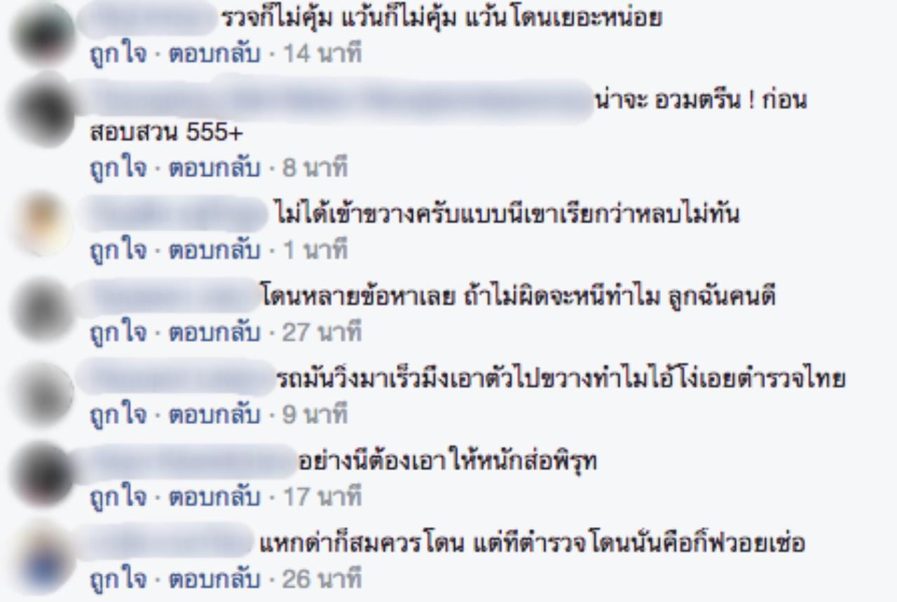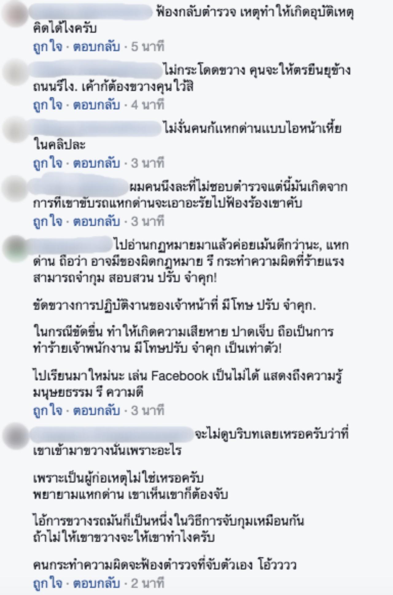 อย่างไรก็ตามพบว่า มีชาวเน็ตเข้ามาแสดงความคิดเห็นกันอย่างหลากหลาย ทั้งฝ่ายที่เข้ามาชื่นชมการทำงานของเจ้าหน้าที่ตำรวจที่ปฏิบัติหน้าที่อย่างเต็มที่ และตั้งข้อสังเกตว่าวัยรุ่นที่พยายามแหกด่านอาจจะทำความผิดมาจึงกลัวว่าจะถูกจับได้ ขณะที่บางส่วนมองว่าตำรวจไม่ควรเอาตัวเข้าขวางเพราะเป็นการตัดสินใจที่อันตรายเกินไป