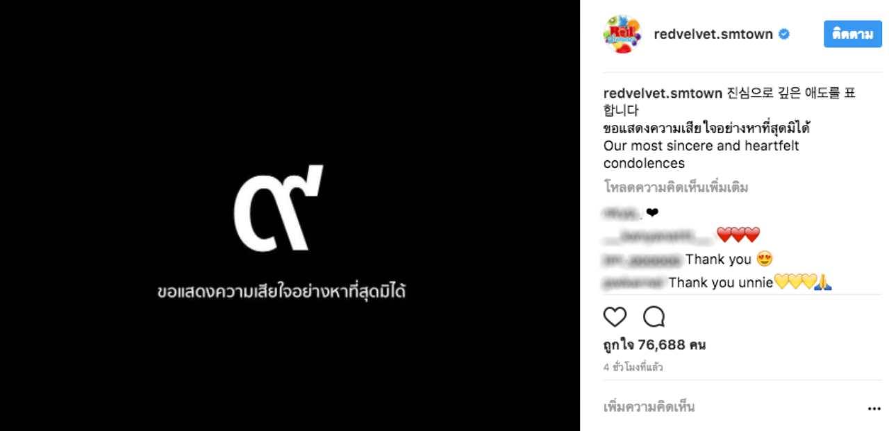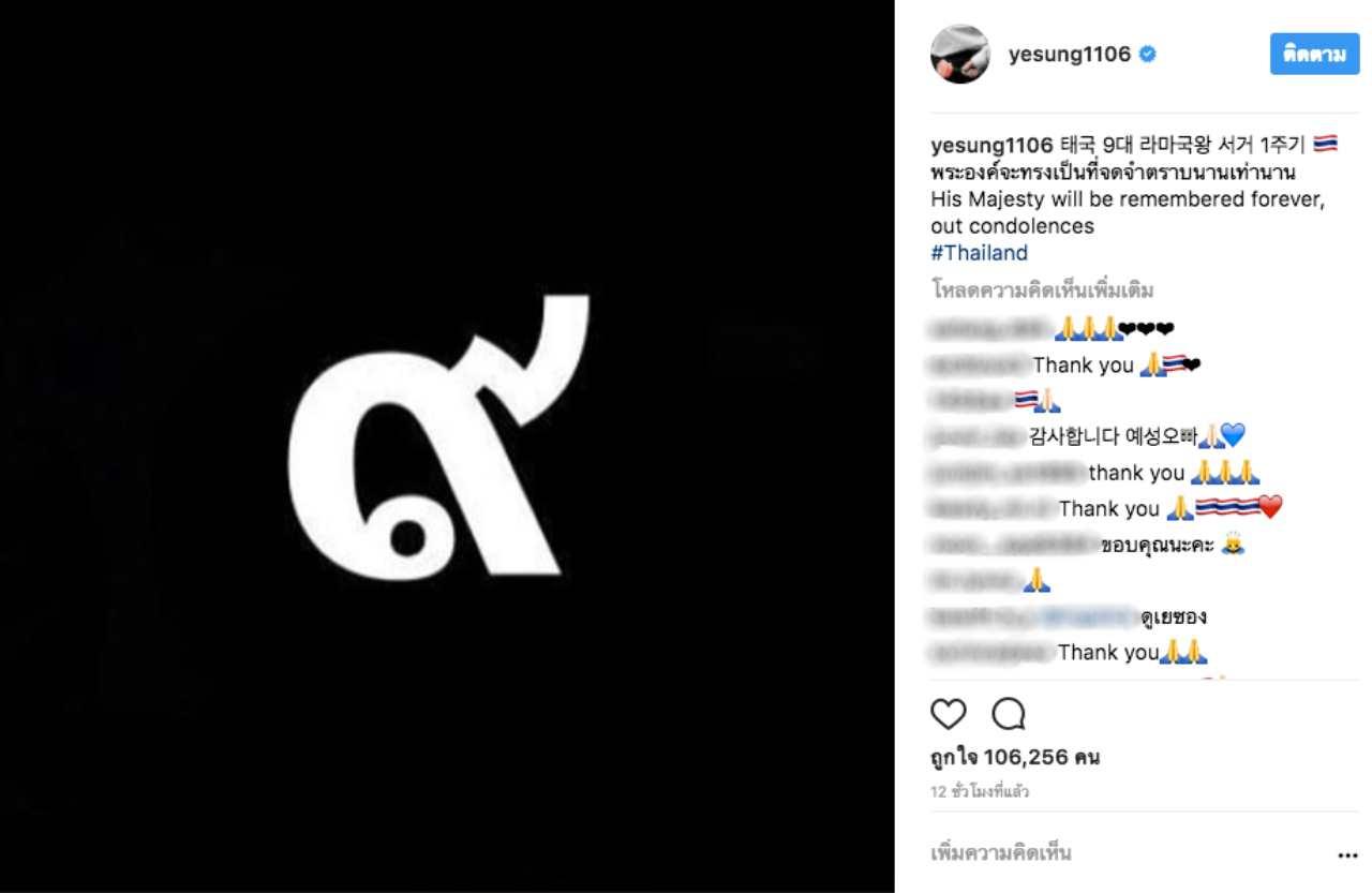 ซุปเปอร์จูเนียร์-ซีเอ็นบลู-เรดเวลเวต ศิลปินเกาหลีใต้ โพสต์ภาพเลข ๙ ร่วมแสดงความอาลัย ครบ 1 ปี การสวรรคตของในหลวง รัชกาลที่ 9 "ขอแสดงความเสียใจอย่างหาที่สุดมิได้"