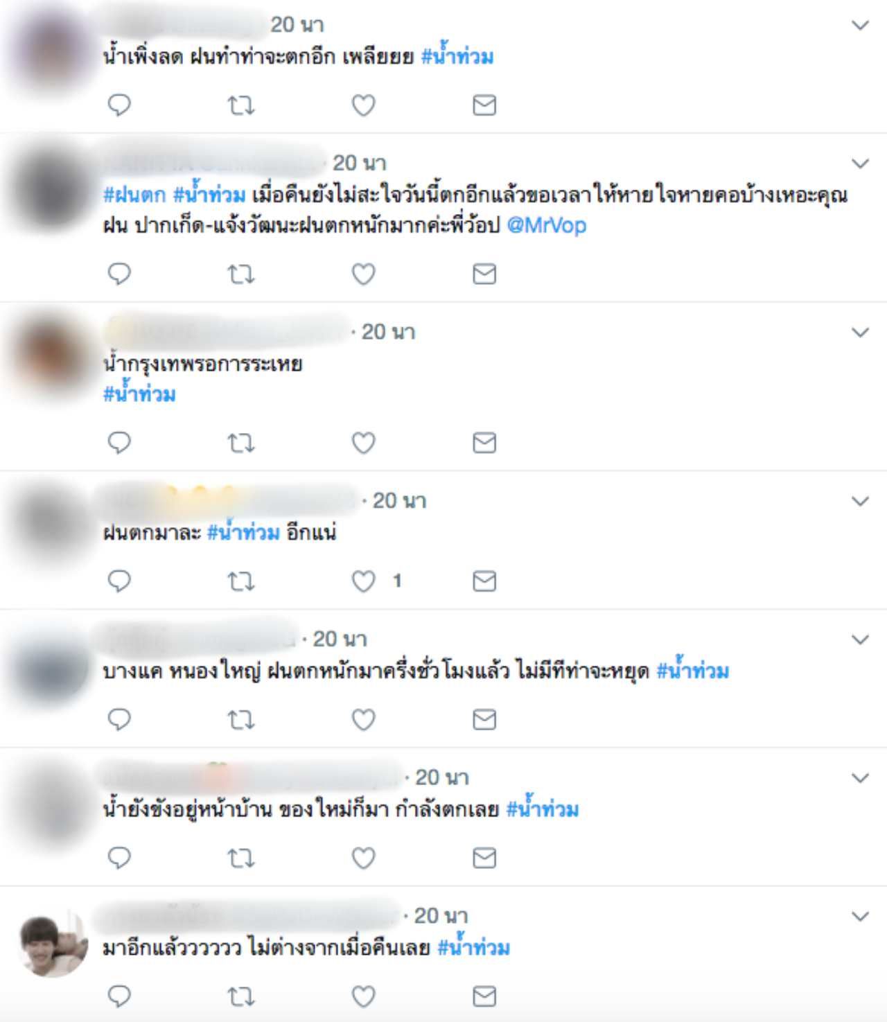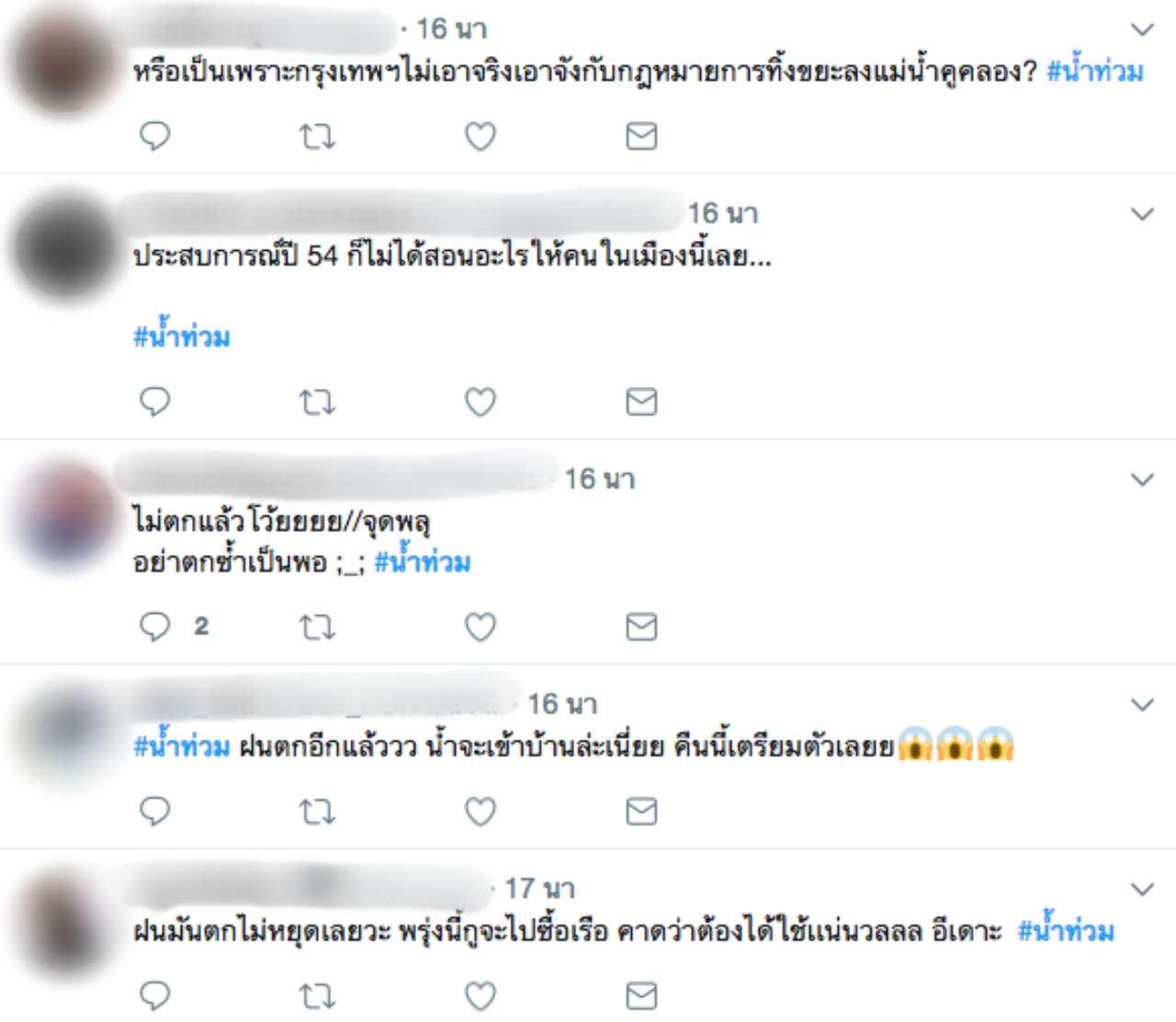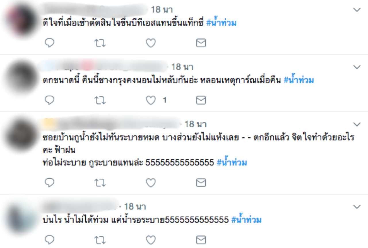 ทั้งนี้พบว่าในโลกออนไลน์ ต่างคอมเมนต์กันอย่างคึกคัก พร้อมกับติดแฮชแท็ก #น้ำท่วม โดยส่วนใหญ่ระบุว่า หากคืนนี้ฝนตกหนักติดต่อกันอีก เกรงว่าประชาชนจะได้รับความเดือดร้อนจากน้ำไหลเข้าท่วมบ้าน