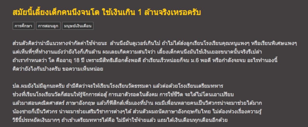 เคยสงสัยไหมว่า หากเราต้องการเลี้ยงเด็กคนหนึ่งจนโตจำเป็นต้องใช้เงินเท่าไร ซึ่งประเด็นดังกล่าวกำลังเป็นข้อถกเถียงกันในโลกออนไลน์ หลังจากวานนี้ (18 ต.ค.60) มีสมาชิกพันทิปดอทคอมได้ตั้งกระทู้สอบถามว่า "สมัยนี้เลี้ยงเด็กคนนึงจนโต ใช้เงินเกิน 1 ล้านจริงเหรอครับ" โดยระบุว่า ส่วนตัวคิดว่าใช้เงินไม่ถึง 1 ล้านบาท เพราะหากมีลูกจะให้ลูกเรียนโรงเรียนวัดเพื่อเรียนรู้วิธีเอาตัวรอดในสังคม และให้เพื่อนๆ ที่เป็นวิศวกรมาช่วยสอนความรู้ในด้านวิชาการ และจบด้วยการให้ลูกสอบเข้าเป็นทหาร