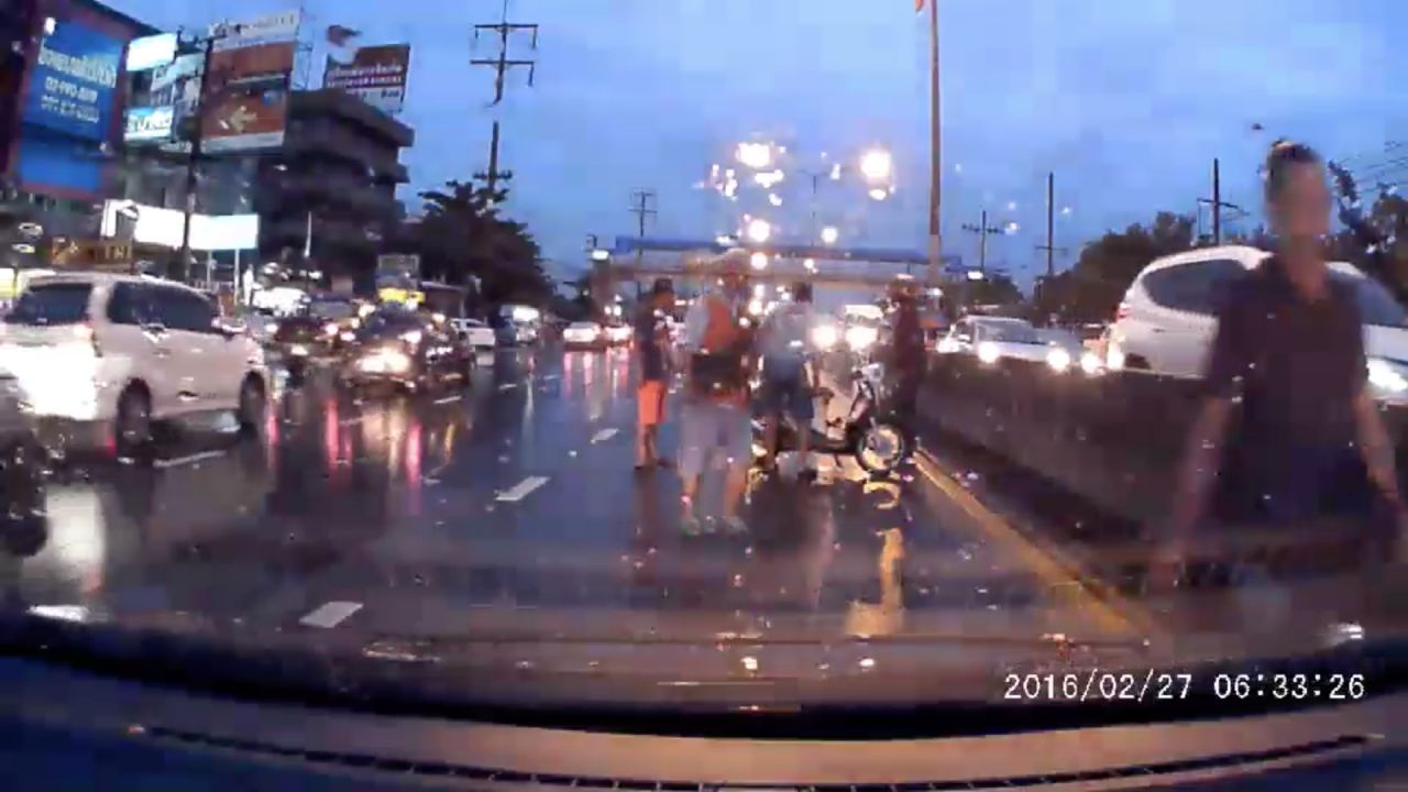 เป็นคลิปอุทาหรณ์สำหรับผู้ใช้รถใช้ถนน สำหรับคลิปวิดีโอล่าสุด (19 ต.ค.60) ที่ผู้ใช้เฟซบุ๊ก Boy Naldo ได้โพสต์คลิปวิดีโอจากกล้องหน้ารถ โดยเป็นเหตุการณ์ประมาณวันที่ 5-6 ต.ค.60 เหตุเกิดบน ถ.รังสิต-นครนายก บริเวณโลตัสคลอง 3 มีรถจักรยานยนต์คันหนึ่งเปิดไฟเลี้ยวขวากำลังขับตามหลังรถเก๋งสีขาว แต่ในจังหวะที่รถเก๋งชะลอตัวทำให้รถจักรยานยนต์พุ่งชนท้ายรถเก๋งอย่างจัง โชคดีที่รถที่ขับตามมาเบรกทันทำให้คนขับรถจักรยานยนต์บาดเจ็บเล็กน้อย
