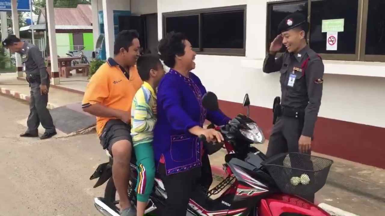 ได้ใจเต็มๆ โลกออนไลน์แชร์คลิปตำรวจไทยยิ้มแย้ม ตักเตือนคุณยายขี่มอเตอร์ไซค์ซ้อนสาม ไม่สวมหมวกกันน็อก บอกถ้าว่างๆ ไปทำใบขับขี่ด้วย ถ้าทำผิดอีกครั้งหน้าโดนลงโทษนะครับ
