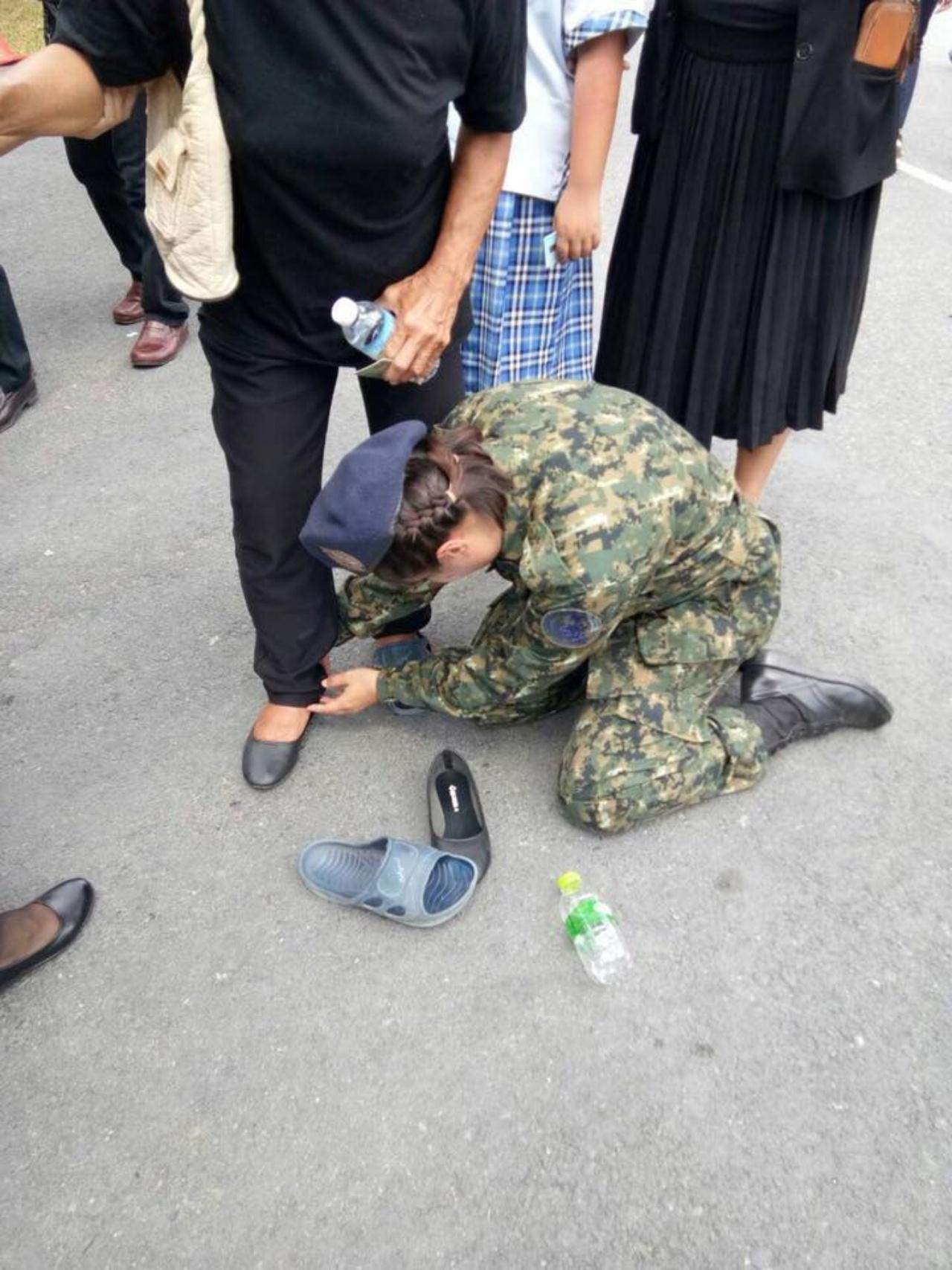 โลกออนไลน์ชื่นชม อส.หญิงคนสวย น้ำใจงาม เสียสละรองเท้าให้ยายสวมรองเท้าแตะ กับให้กระโปรงแก่เด็กหญิงสวมกางเกงฟิต ได้เข้าถวายดอกไม้จันทน์