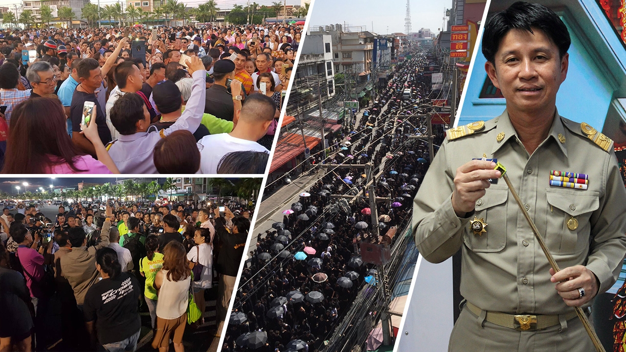 นับตั้งแต่วันที่ 30 ต.ค. 60 มีการประท้วงขับไล่ นายภัครธรณ์ เทียนไชย ผู้ว่าราชการจังหวัดชลบุรี เนื่องจากประชาชนไม่พอใจการจัดงานพระราชพิธีถวายพระเพลิงพระบรมศพ เมื่อวันที่ 26 ต.ค. 60 ณ พระเมรุมาศจำลอง บริเวณสนามหน้าศาลากลางจังหวัดชลบุรี