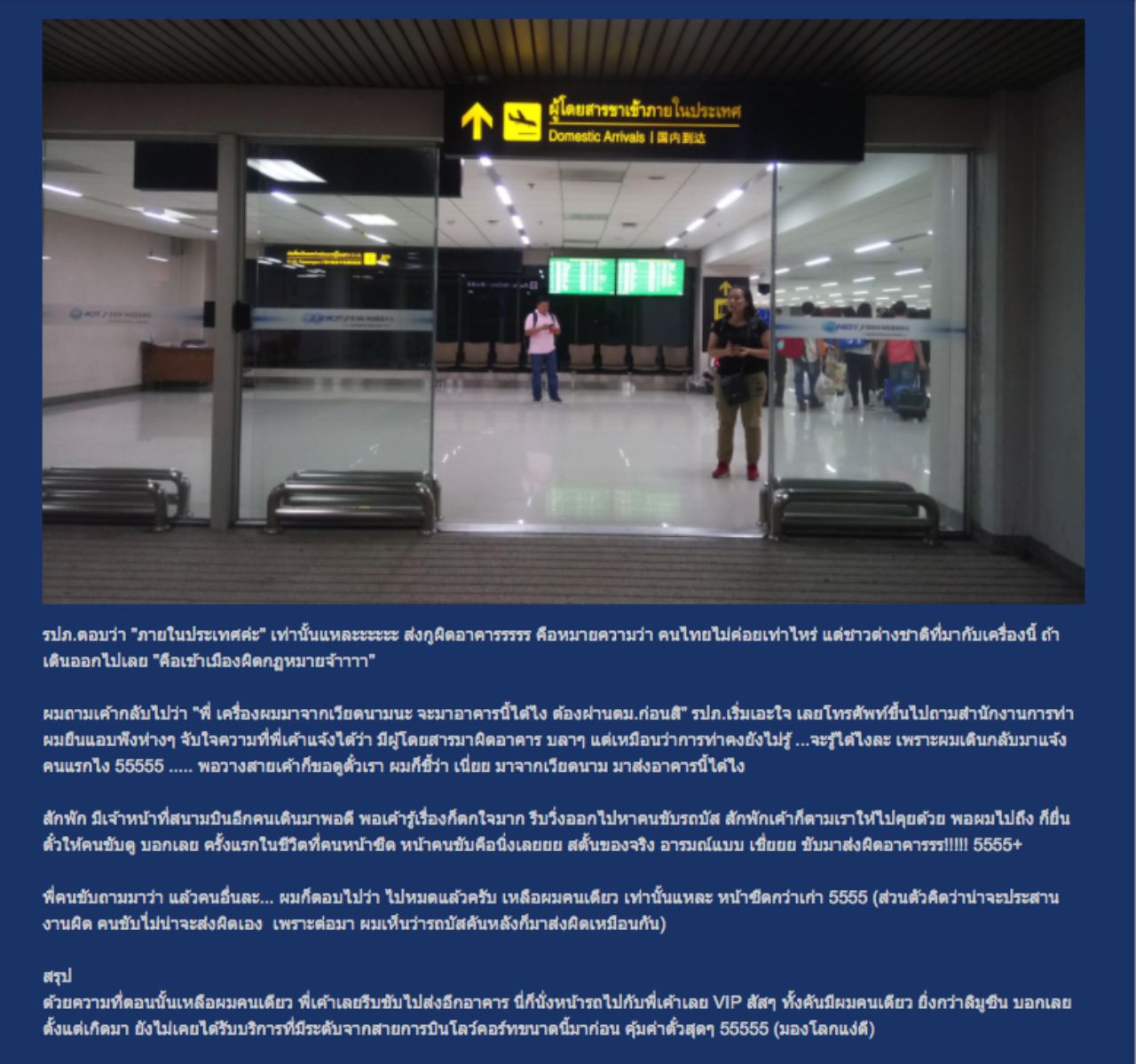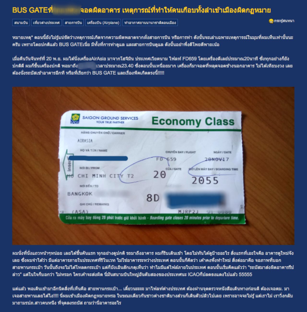 สร้างความแปลกใจให้กับหลายคนไม่น้อย หลังจากวานนี้ (21 พ.ย.60) มีหนุ่มคนหนึ่งตั้งกระทู้ว่า "BUS GATE จอดผิดอาคาร เหตุการณ์ที่ทำให้คนเกือบทั้งลำเข้าเมืองผิดกฎหมาย" โดยเล่าว่า ตนเองได้นั่งเครื่องมาจากโฮจิมินห์ ประเทศเวียดนาม และมาถึงสนานบินในประเทศไทย ประมาณ 23.40 น. ซึ่งเครื่องได้จอดนอกอาคาร ทำให้ต้องนั่ง BUS GATE เข้ามาที่อาคาร