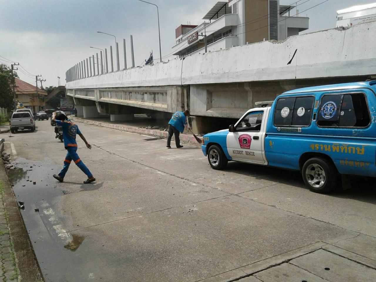 เคยคิดกันไหมว่าการที่จอดรถอยู่เฉยๆ แล้วมีอะไรร่วงหล่นต่อหน้าต่อตา จะรู้สึกอย่างไร ล่าสุด วันนี้ (22 พ.ย. 60) ผู้ใช้เฟซบุ๊กชื่อ หมูน้อย ลั่นล๊า ได้โพสต์คลิปกล้องหน้ารถขณะที่จอดอยู่บริเวณปลายสะพานข้ามแม่น้ำท่าจีน ใกล้กับ สภ.สามพราน จู่ๆ มีรถสิบล้อขนหมูเสียหลักกวาดราวสะพาน จนทำให้แท่งเหล็กร่วงกราวลงมาเกือบทั้งแผง ซึ่งเป็นที่น่าหวาดเสียวต่อคนที่อยู่ในเหตุการณ์อย่างมาก