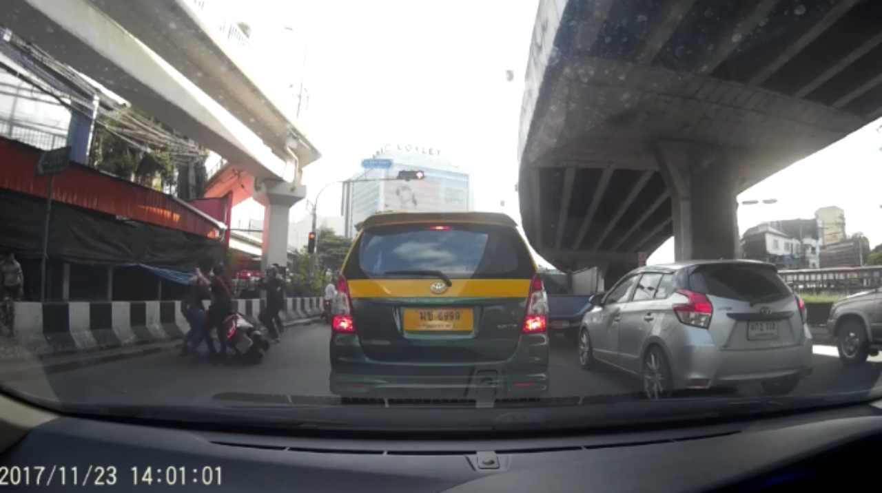 หนุ่มวัยรุ่นขี่จักรยานยนต์ติดไฟแดงปะทะกลุ่มเด็กช่างซึ่งจู่ๆ ปรี่ตรงเข้ามาที่หนุ่มวัยรุ่นจนถูกฟันเข้าที่แขนและที่หลัง รวมถึงรถจักรยานยนต์ก็ถูกทุบทำลายจนเสียหายด้วย