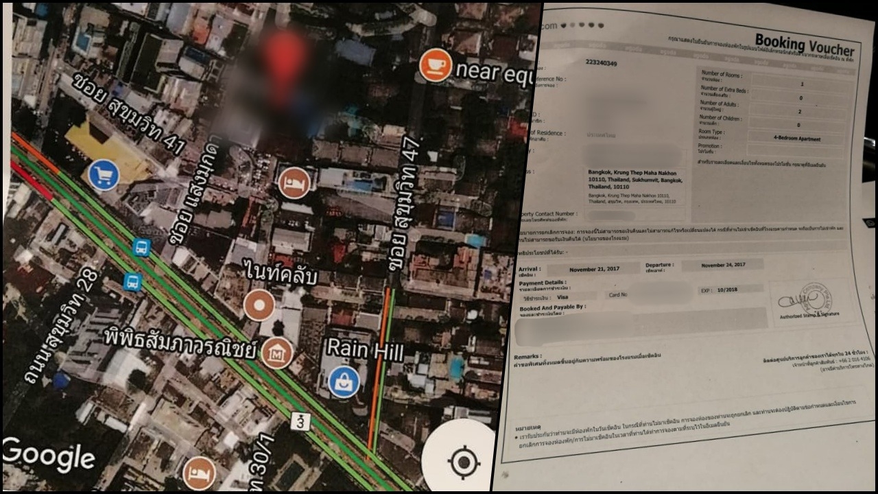 ทั้งนี้ ผู้ใช้เฟซบุ๊ก Sulawan Luckchonlatee ซึ่งเป็นสาวผู้เสียหาย ได้ระบุเพิ่มเติมว่า สิ่งที่น่าตกใจไปกว่านั้นคือ ที่ตั้งโรงแรมที่ระบุใน booking ใน ซ.สุขุมวิท 43 กลับเป็นบ้านพักส่วนบุคคล ตนจึงเดินสอบถามไปเรื่อยๆ จึงพบกับโรงแรมแห่งหนึ่งใน ซ.สุขุมวิท 45 ซึ่งมีลักษณะคล้ายกับภาพโรมแรมที่นำมาลงในเว็บไซต์ แต่เป็นคนละชื่อกันและไม่ได้รับเงินจากเว็บไซต์