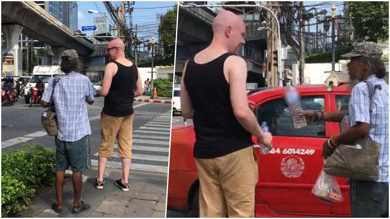 วันที่ 9 ธ.ค. 60 ผู้ใช้เฟซบุ๊ก Ten FuuTist โพสต์คลิปวิดีโอประทับใจที่มีให้ชายคนหนึ่งที่ใส่เสื้อผ้าไม่ได้หรูหรา แต่เมื่อเห็นชายชาวต่างชาติที่ยืนรอข้ามถนนอยู่ใกล้ถือขวดน้ำในมือ จึงยื่นขวดน้ำของตนเองที่มีขนาดใหญ่กว่าให้ โดยเป็นเหตุการณ์เมื่อวันที่ 7 ธ.ค.ที่ผ่านมา นอกจากนี้ เจ้าของคลิปได้ระบุอีกว่า "แชร์ให้โลกรู้ว่าคนไทยมีน้ำใจเสมอ"
