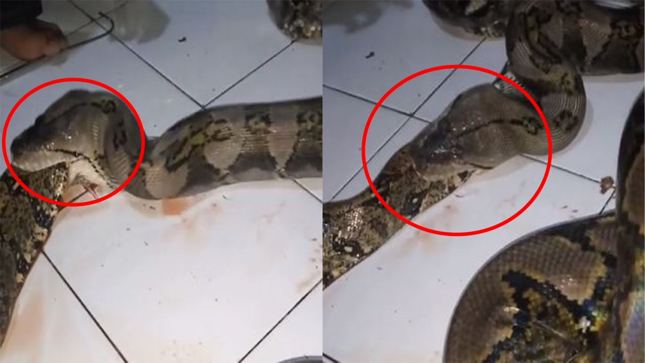 คลิปชวนสยอง! เหลือมยักษ์เขมือบเพื่อนตัวเองเป็นอาหาร คาดเจ้าของให้อาหารไม่พอกิน เลยต้องหาอะไรกินประทังชีวิต