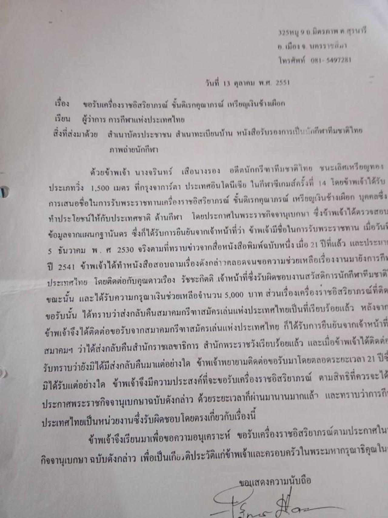 เมื่อกลางดึกที่ผ่านมา นายจตุรงค์ สุขเอียด โพสต์ผ่านเฟซบุ๊กส่วนตัว ถึงเรื่องราวของ นางจรินทร์ เสือนางรอง อดีตราชินีประเภทลู่ นักวิ่งระยะกลางทีมชาติไทย และเป็นเจ้าของเหรียญทองซีเกมส์ กับเหรียญทองหลายสนาม แต่กลับถูกรุ่นพี่หลอกตั้งวงพนันในค่าย หลังฉลองได้เหรียญซีเกมส์จนหมดเงินรางวัลอัดฉีดในคืนเดียว โดยเมื่อกลับมาประกาศได้รับพระราชทานเครื่องราชอิสริยาภรณ์ พร้อมกับนักกีฬาหลายคน แต่เป็นคนเดียวที่ไม่ได้รับเพราะติดเรียน ไปขอรับทีหลังก็ถูกเจ้าหน้าที่การกีฬาแห่งประเทศไทย (กกท.) สมัยนั้น อ้างว่าหาย